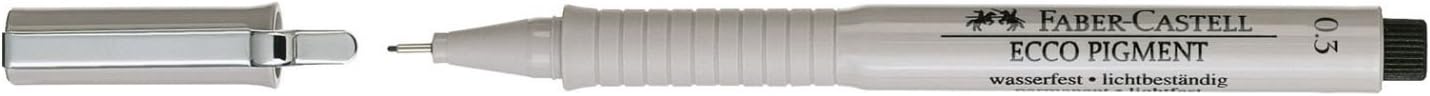 The popular and reliable ECCO PIGMENT fibre tip pens from Faber-Castell are suitable for writing, drawing and sketching. Thanks to their special pigmented ink they are also ideal for use on drawing paper and transparent paper. The pigmented ink is waterproof and lightfast. The long metal-clad fiber tips in 9 different line widths work accurately with stencils and rulers.