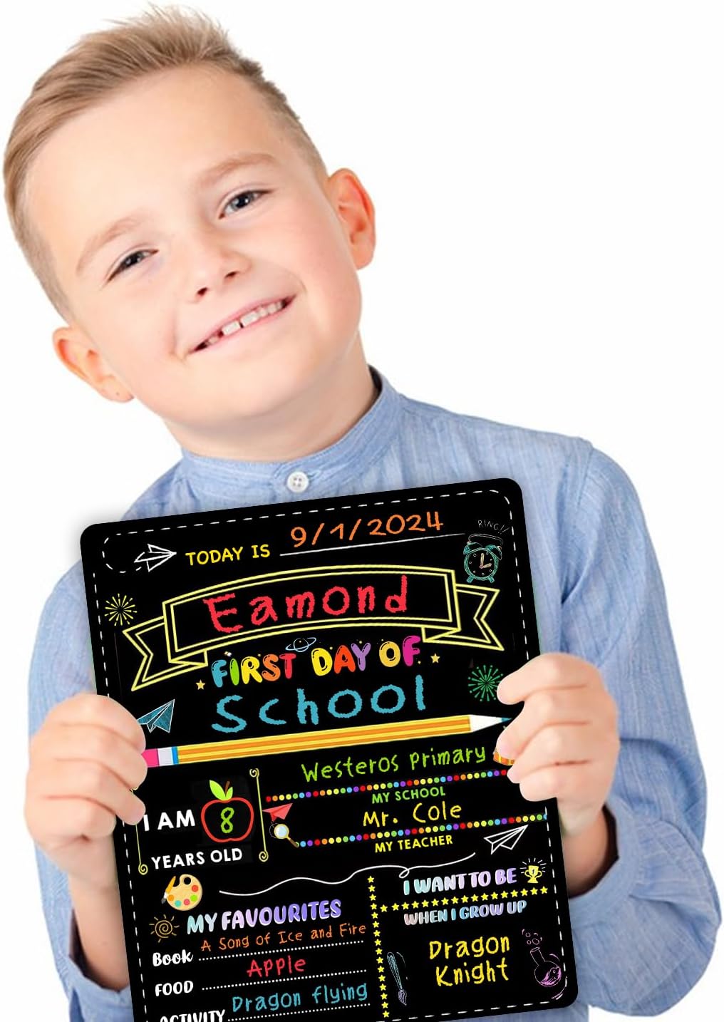 【Exquisite Design】Our first day of school board features a double-sided design (first and last day) Meet different commemorative moments for children.At the same time,we have also designed cute and colorful patterns,as well as rich and colorful colors that can attract children’s attention and stimulate their interest.Having kids fill in their name,grade,teacher,date and age to encourage them to think and express their favorites and dreams.