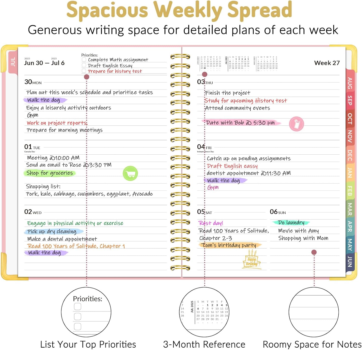 2025 – 2026 Academic Planner: Come with 12 months (July 2025 – June 2026) of monthly and weekly pages, providing a fresh start for a school year! This agenda planner features a simplified layout for ease of use, offering spacious writing space to plan your schedule freely. The elegant design with attention-grabbing colors, adds a touch of sophistication to any setting!