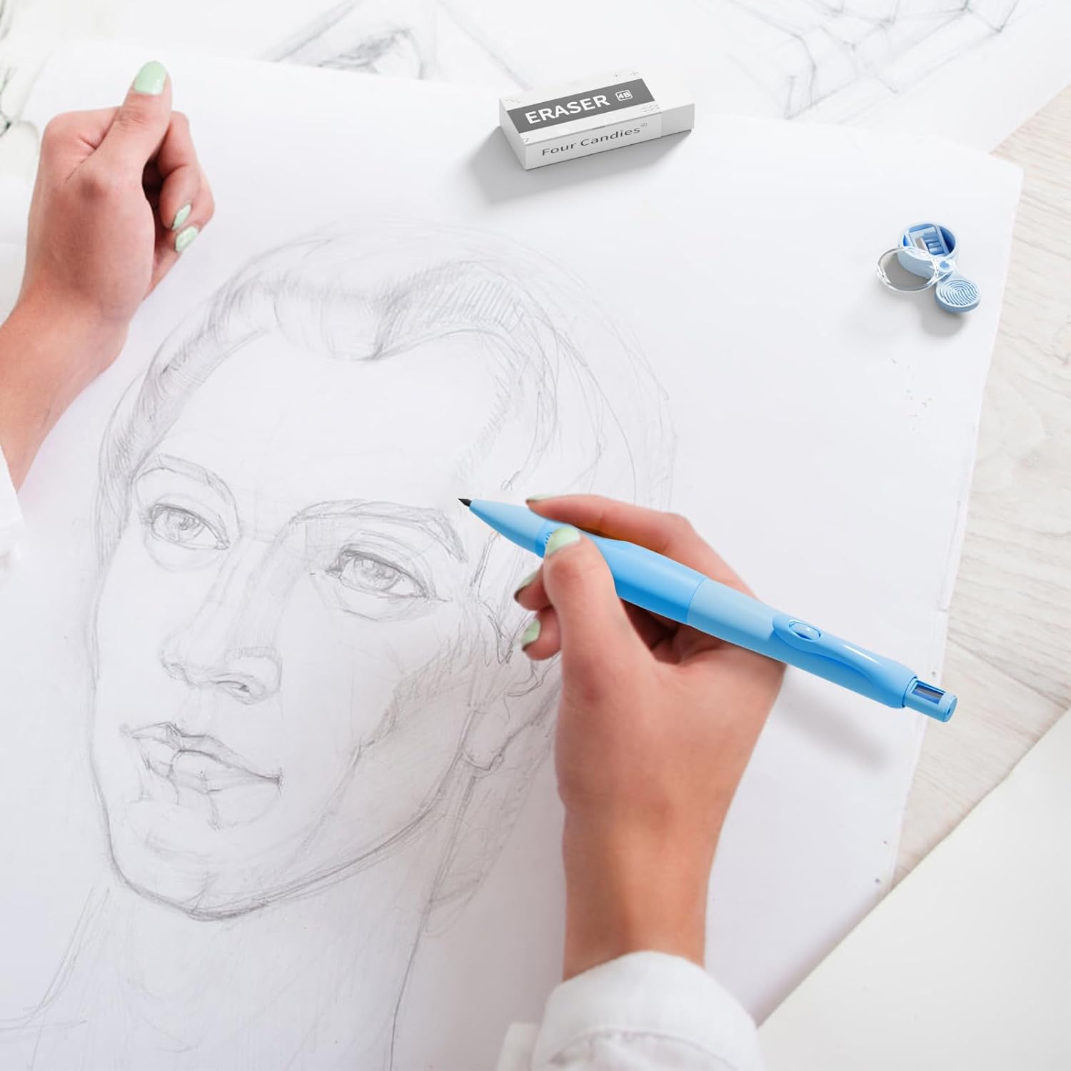 [UNIQUE GRIP ZONE] The grip of the 2.0mm mechanical pencil is crafted from soft silicone material and features a three-finger corrective design. This design allows the fingers to find a relaxed and fatigue-free posture for writing in a natural and intuitive manner. Guide students to form scientific pencil holding posture.
