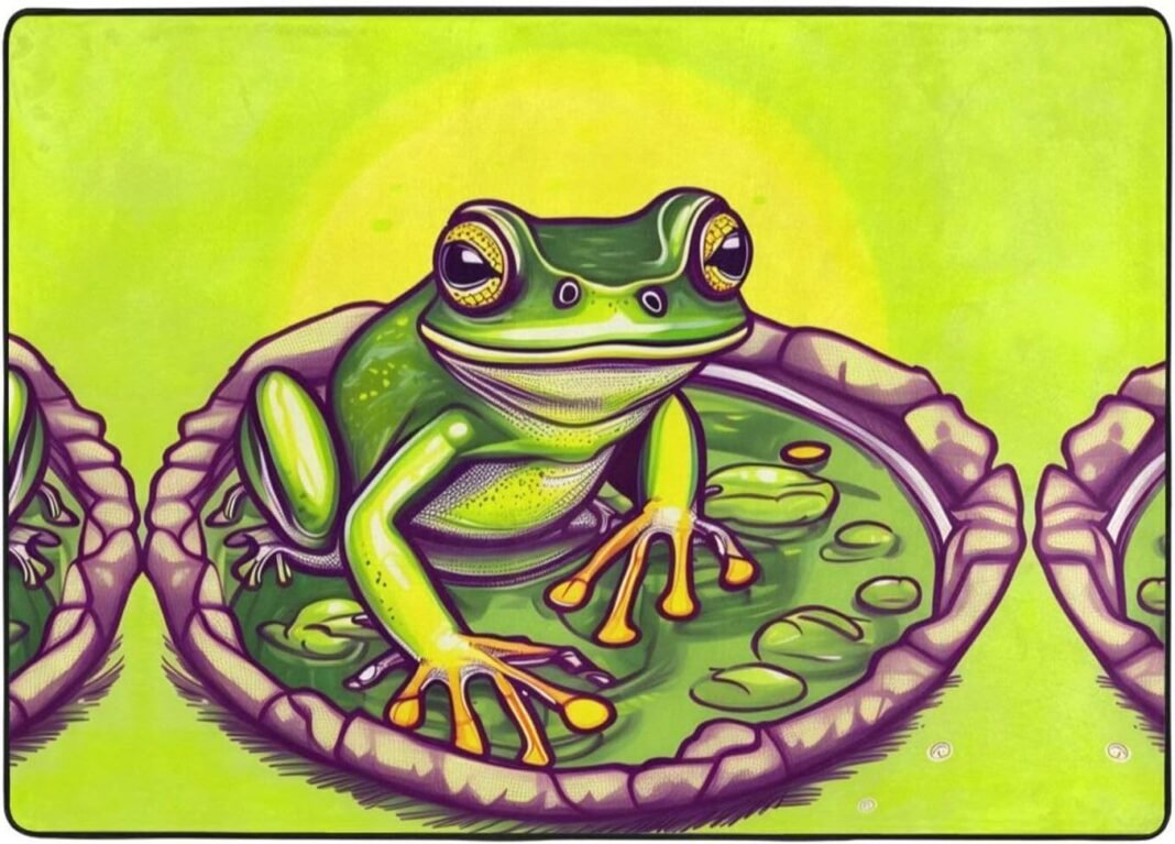 Frog in a Pond Flannel Floor mat (80×58 inches), Bedroom Carpet, Living Room and Study Decoration mat