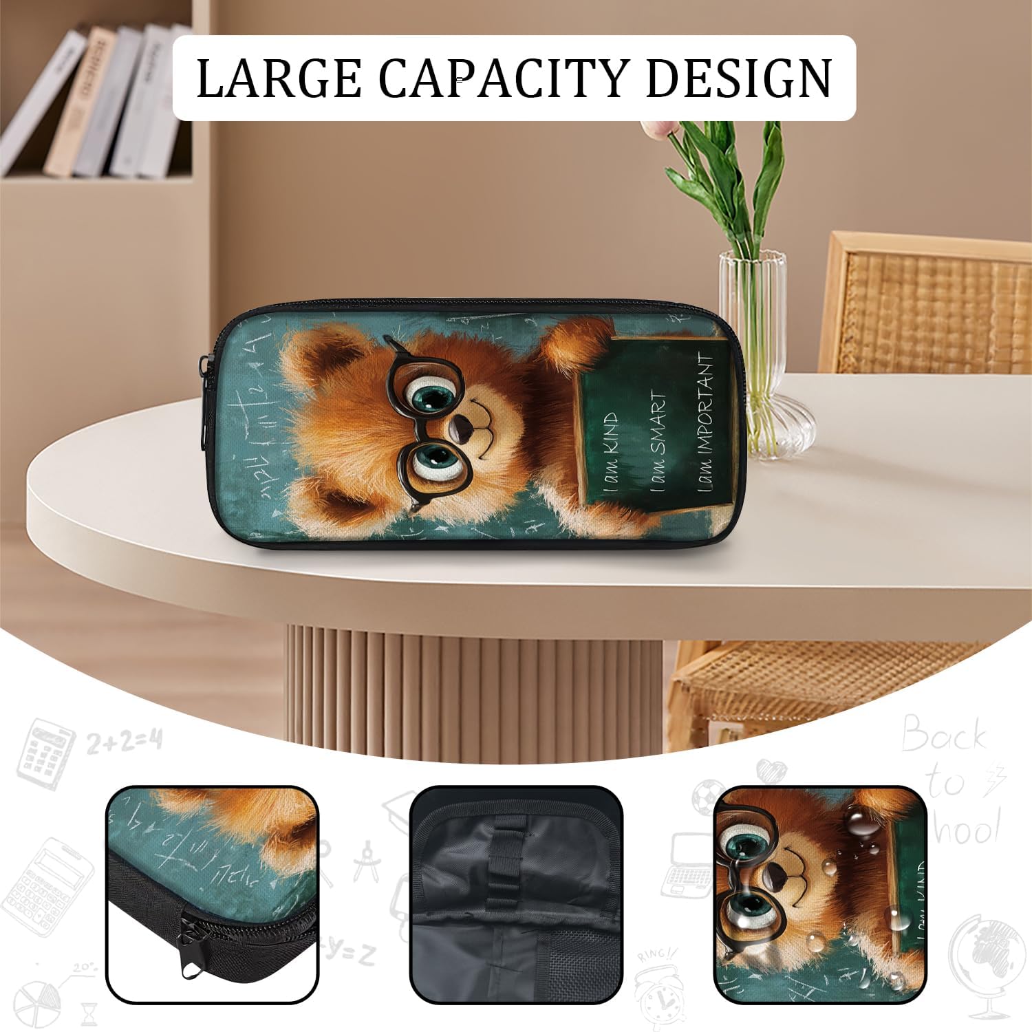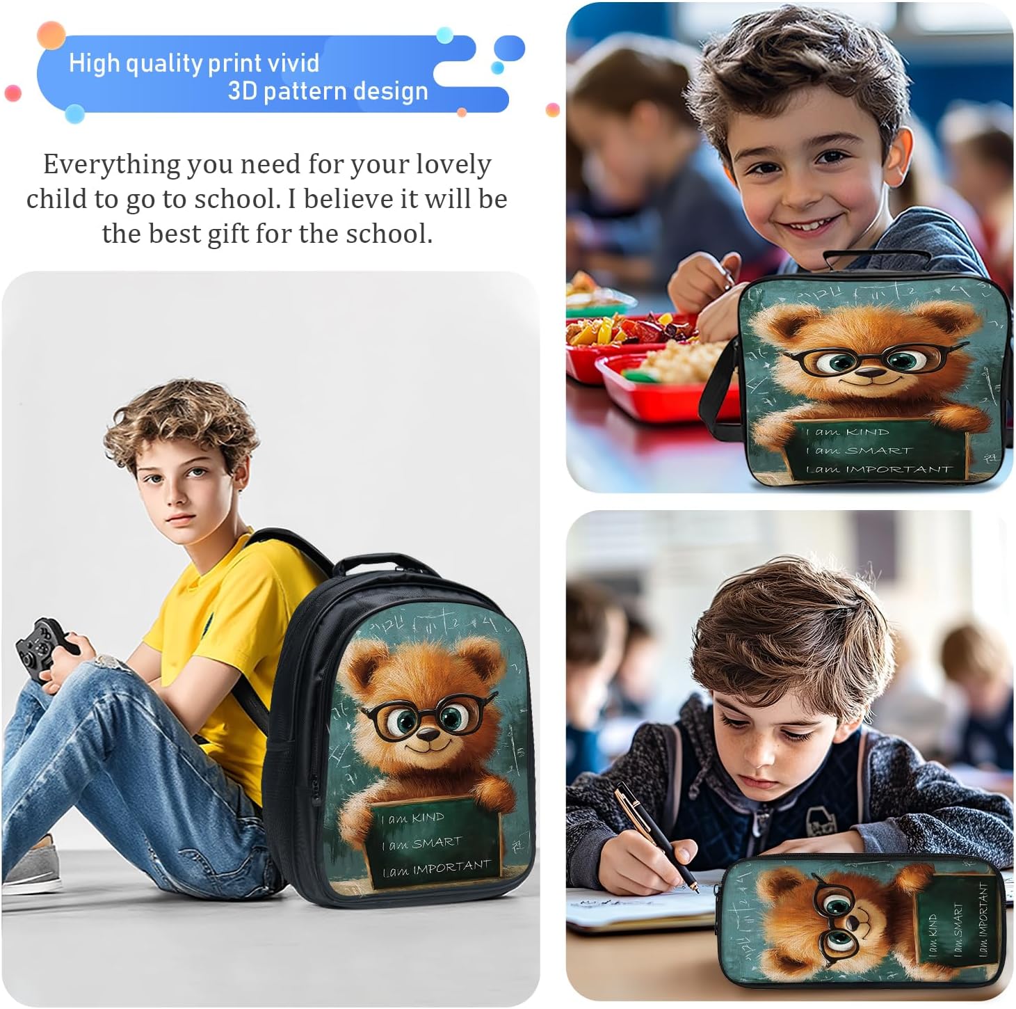 Funny Bear Backpack Set 3 Piece School Bags and Lunch Box with Pencil Case Cute Brown Bear Bookbag Set for Toddler Kids Girls Boys Teens Kindergarten Elementary Middle