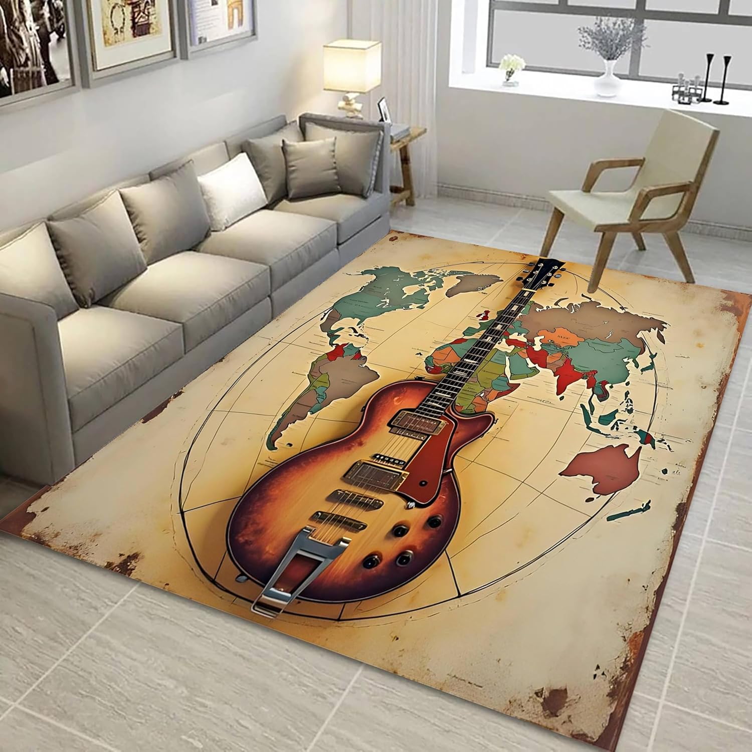 【Stylish Design】: Transform your space with our Retro Guitar Area Rug, perfect for music-themed decor. This unique rug adds a retro touch while complementing various interior styles in your living room, music room, or studio.