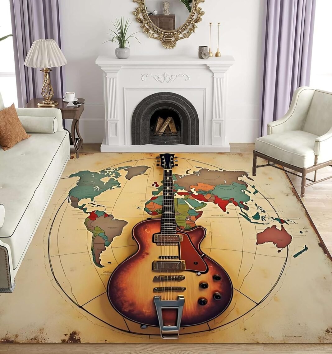 Transform your living space with our Vintage Guitar Area Rug, a perfect blend of artistic design and practical functionality.