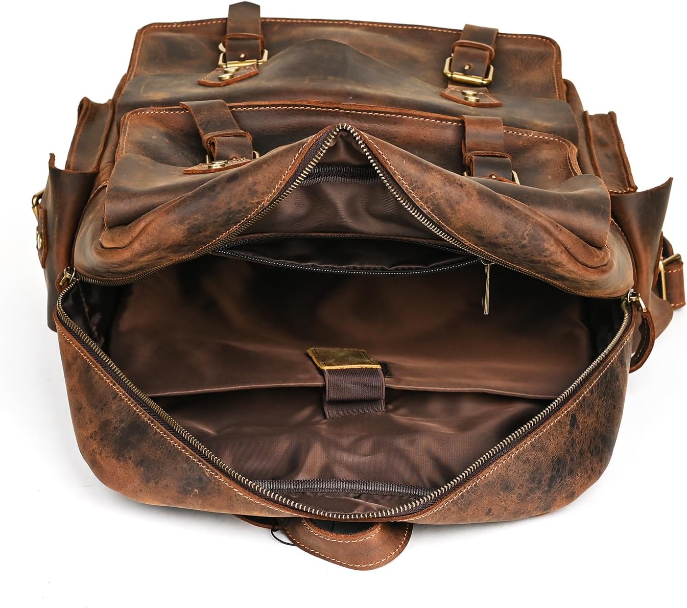 Material: This bag is made of quality genuine crazy horse leather trim.The premium quality ensure the long lasting durability. The crazy horse leather is made of high-end top layer cowhide material, with a thickness of 2.0mm, which is solid and durable.And the quality solid hardware won’t gather rust easily.