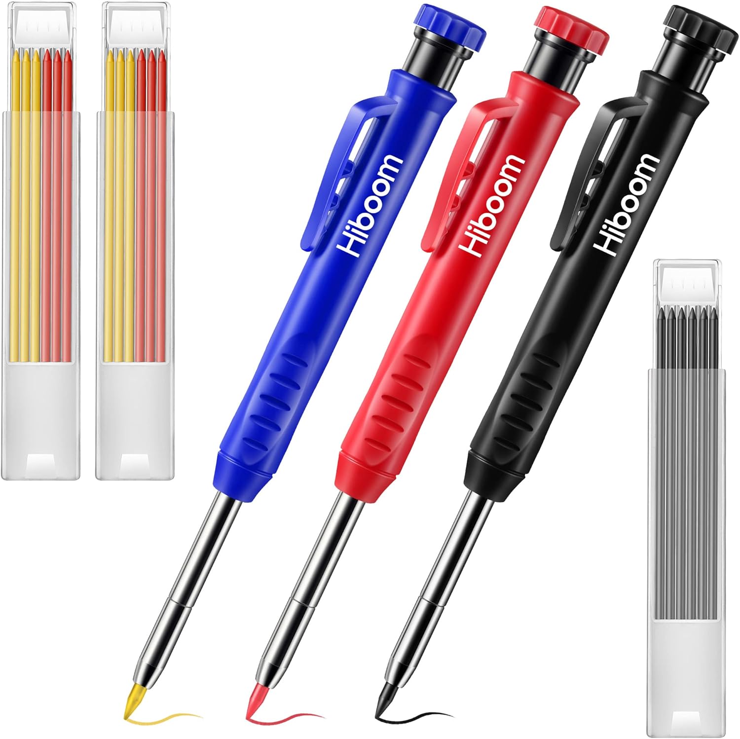 Mechanical pencil: the carpenters pencil do not slip out of the fingers and repetitive tracings cause less pain; The pen clip design can be easily attached to the pocket, easy to use and not easy to lose, gaining in efficiency, proper for construction and bricklayers