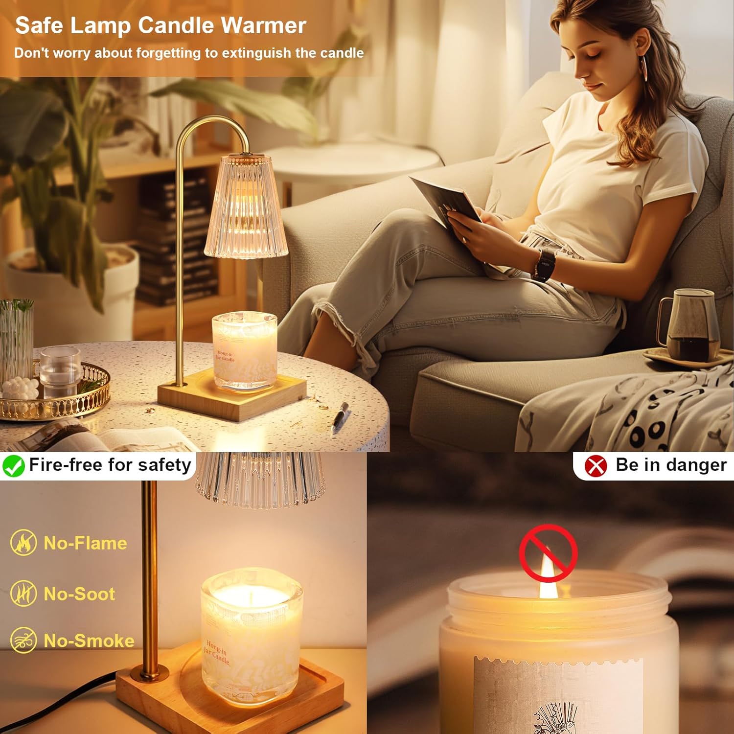 【Dimmable Candle Warmer Lamp with Timer】The candle melts from top to bottom and the candle warmer light emits the scent quickly, allowing the scent to fill the room, making it the perfect room decor aesthetic lamp. The lamp candle warmers adjusts the melting speed with a switch, the higher the setting, the faster it melts. There are 4 light-up effects (10%-30%-70%-100% ) and 3 timing time options (2H/4H/8H) to meet your individual needs.