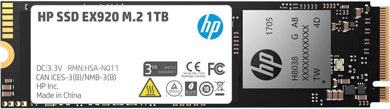 Model Brand: HP Series: EX920 M.2 model: 2yy47aa#abc device Type: internal Solid State Drive (SSD) used for: consumer Details form factor: M.2 2280 Capacity: 1TB memory components: 3D TLC NAND interface: PCI-Express 3(8gb/s) x4, NVMe 1.3 compliant with PCI-Express 3.1 performance MAX sequential read: up to 3, 200 Mbps Max sequential write: up to 1, 800 Mbps 4KB random read: up to 350, 000 IOPS 4KB random Write: up to 250, 000 IOPS read latency: 0.020ms write latency: 0.022ms MTBF: 2, 000, 000 hours Features High performance low power increased system responsiveness high reliability small Form-Factor minimum weight enhanced ruggedness high data integrity and security environmental power consumption (idle): 0.73W power consumption (active): 6.23W Operating temperature: 0°C +70°C storage Temperature: -40°C +85°C Max shock resistance: 100G/ 6 msec Max vibration resistance: 3.1 grams (2-500 Hz) Dimensions & Weight height: 3.5mm width: 22.00mm Depth: 80.00mm weight: 5.4G