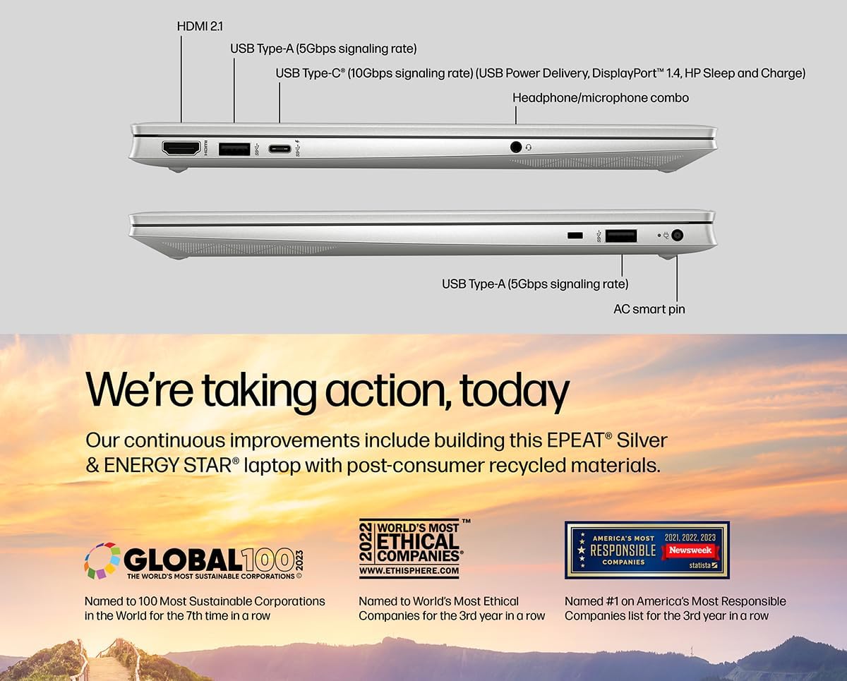 Strong Connectivity:Stay connected with WiFi 6 and Bluetooth 5.3 built in. Integrated HP Wide Vision 720p HD camera and integrated Dual Array Digital Microphones, 1x USB Type-C, 2x USB Type A, 1x HDMI 2.1, enabling you to stay connected and access the internet wirelessly