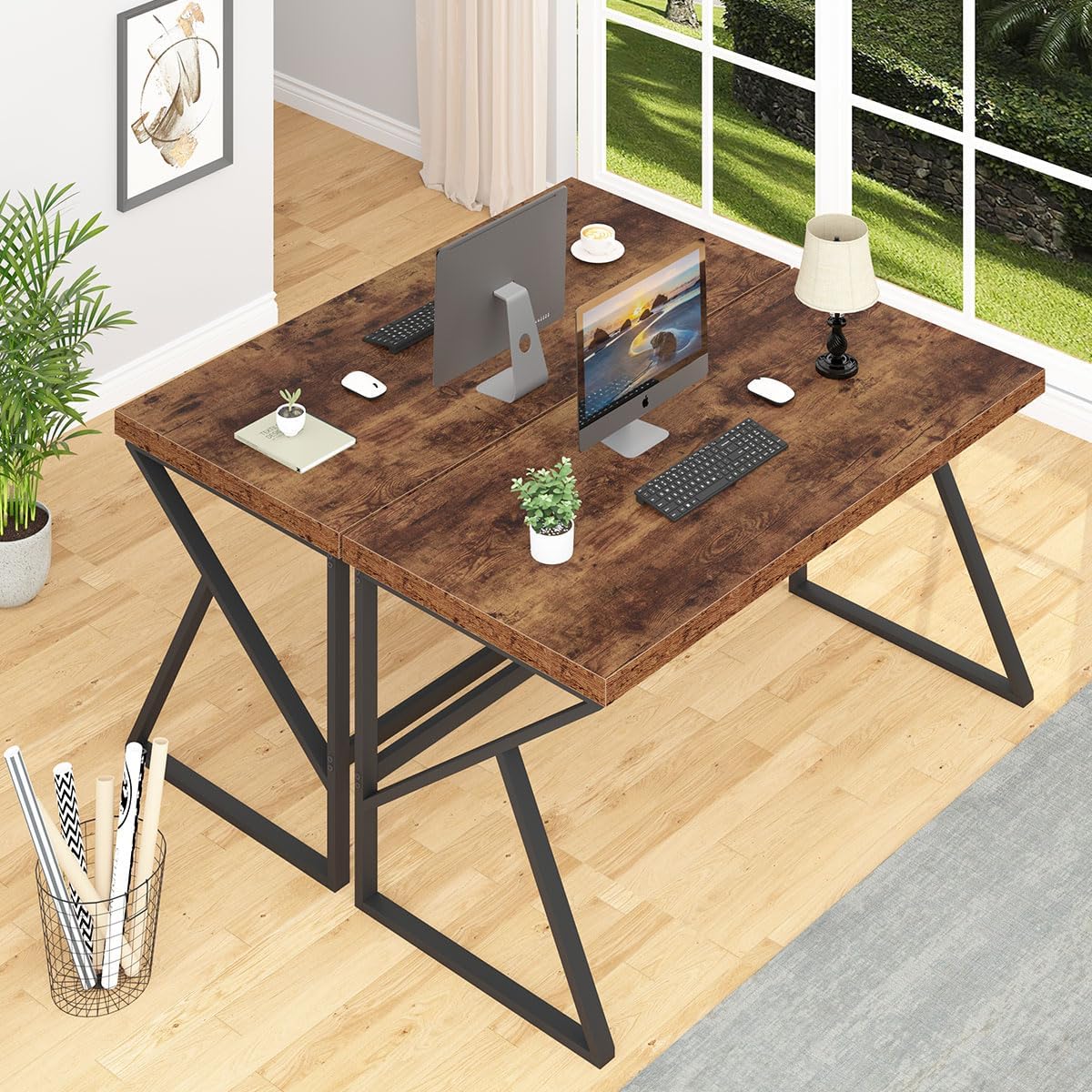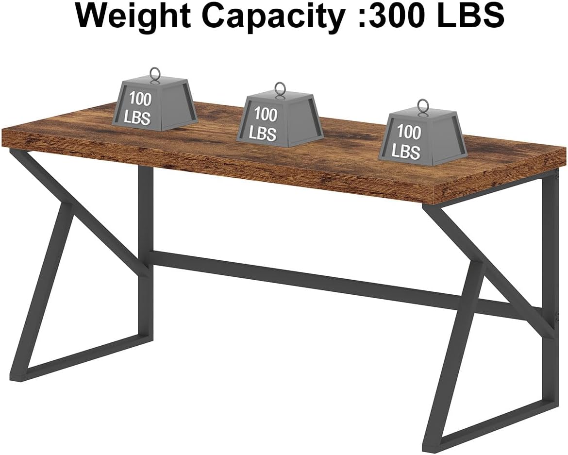 【Sturdy and Durable】: This rustic desk are designed with 1.57” thick tabletop and heavy duty K-shaped metal legs, which can easily hold up 300 lbs weight capacity. This rustic computer desk can be served as laptop desk, pc desk, work desk, writing desk, study desk, gaming desk, student desk and workstation.