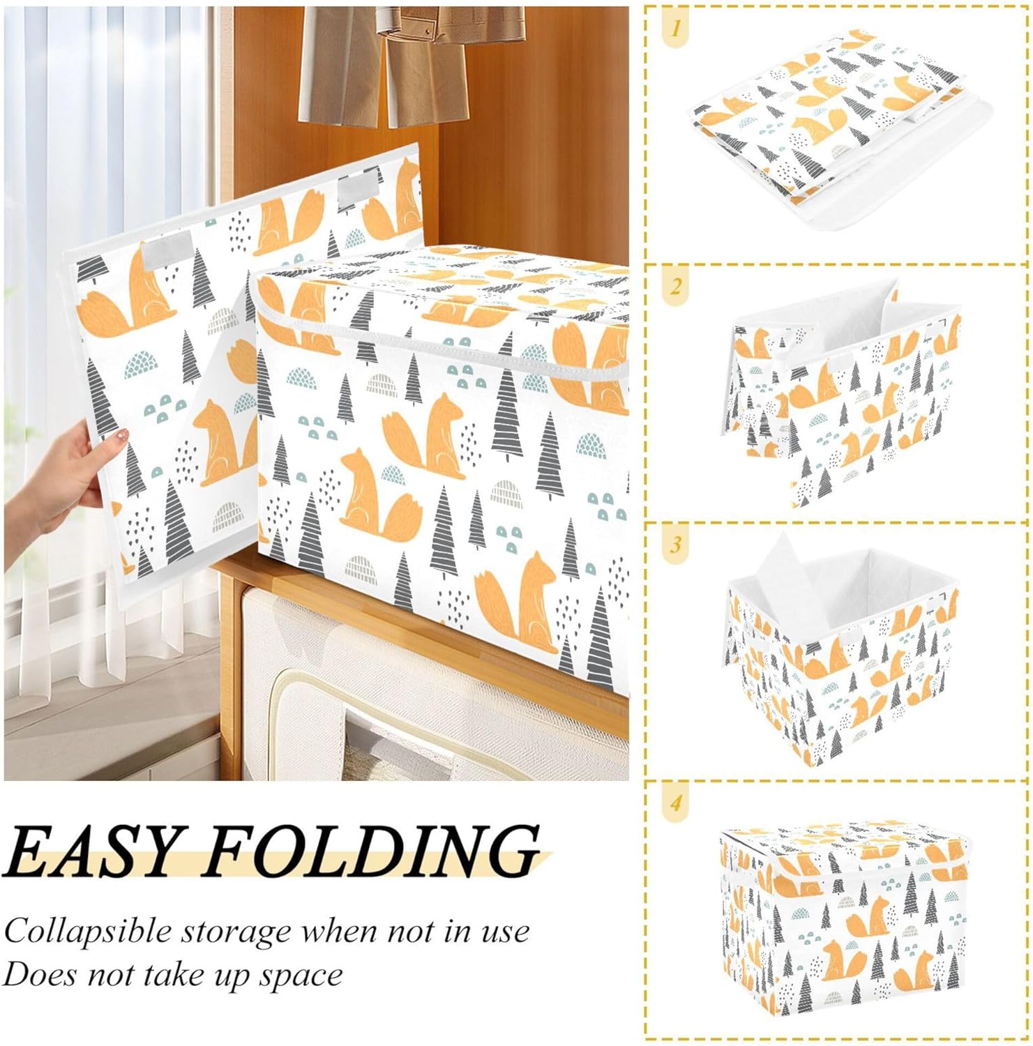 JUNZAN Mood Squirrels Storage Box with Lid Collapsible Box Storage Quart Storage Bin for Home Studyroom Home Decor