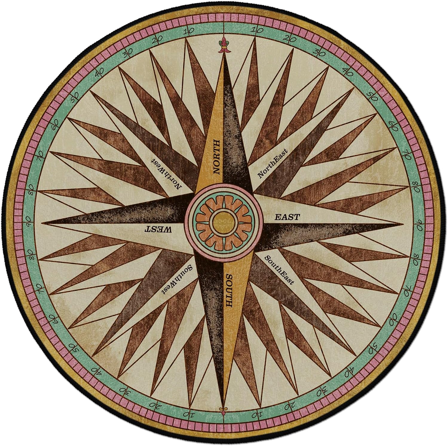 keepcute Vintage Compass Area Rug Doormat Nautical Theme Non-Slip Floor Mat Round Rug Carpet for Bedroom Living Room Study Playing Carpet, 3′ Diameter