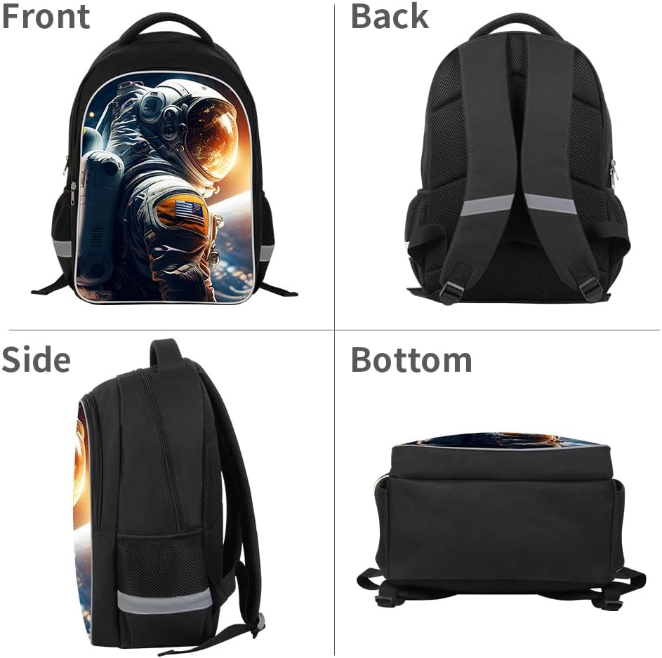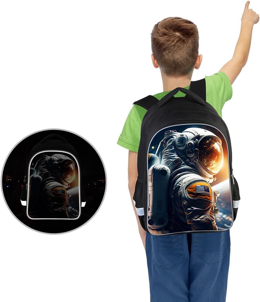 Kids Backpack, 3D Reflective Cartoon, 600D Polyester & Dual Zippers, 17″ Bookbag with Ergonomic Design for boys & girls age 6-18, Astronaut Style for school Children Kids