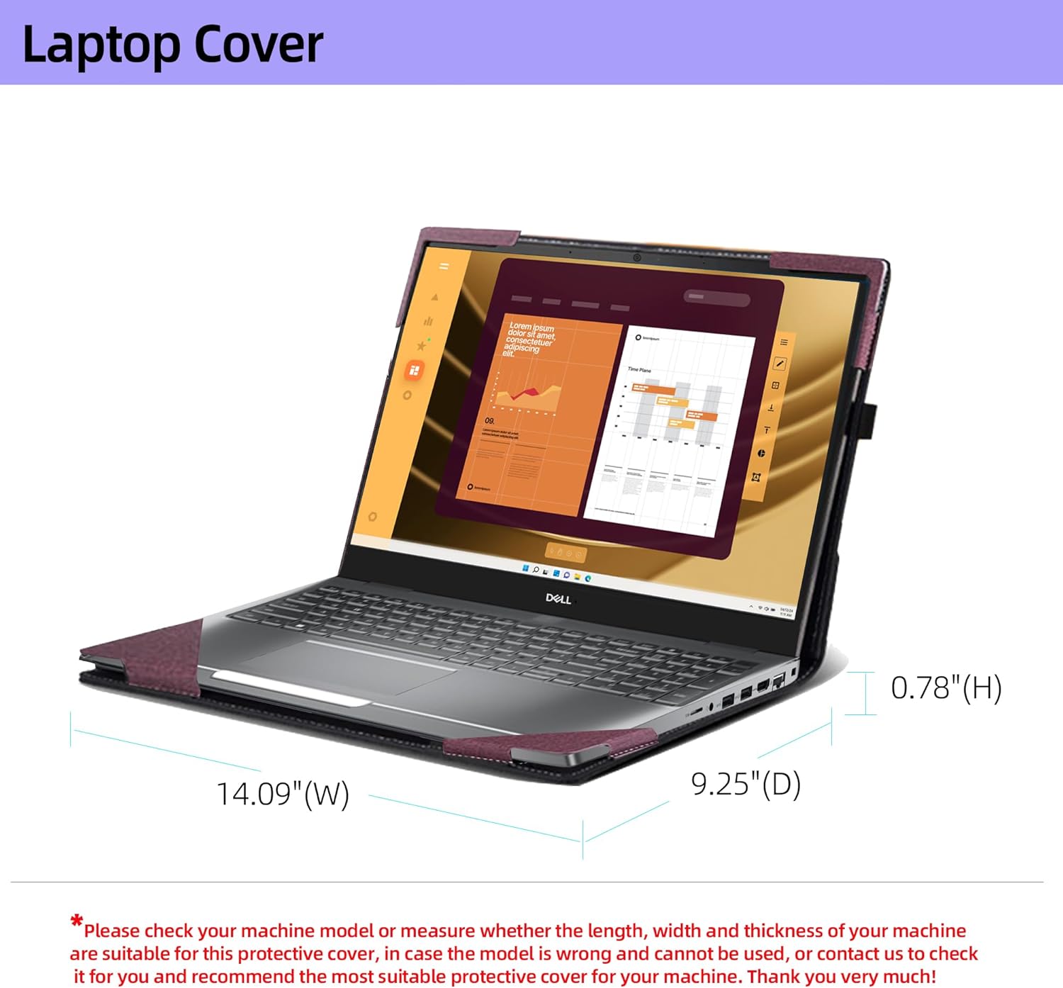 Laptop Case for DELL Latitude 5550 2-in-1 |Latitude 5540 5530 5520 Laptop All Inclusive Drop Case 15.6″ PU Leather Inside Pocket Cover (Wine red)