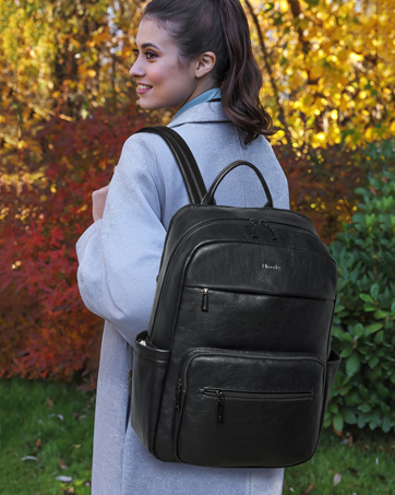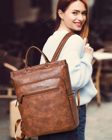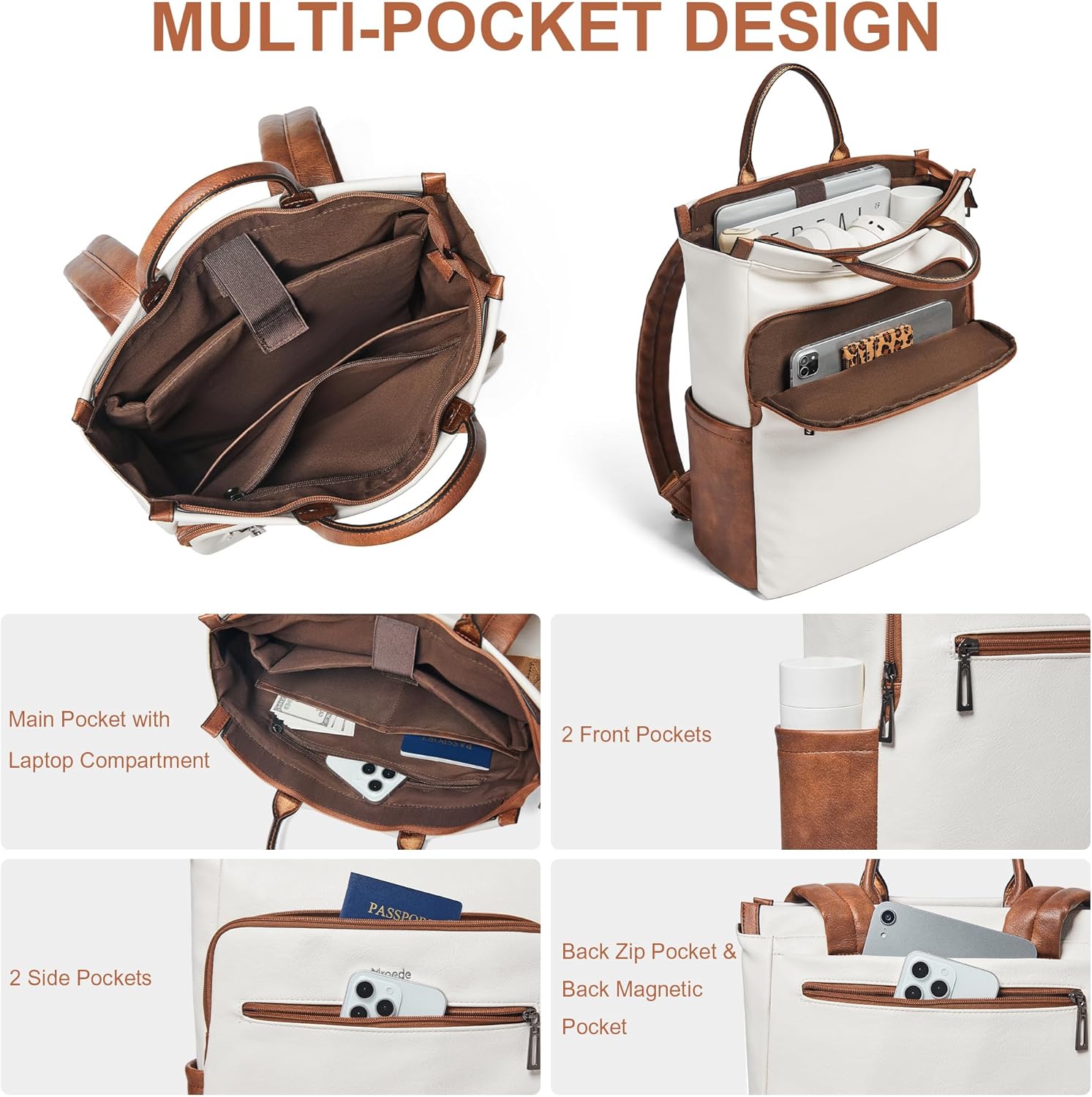 Multi-Pocket Laptop Backpack For Women : Women laptop backpack measures 16*12.5*5.5 inches and weighs 1.98 lbs. This leather laptop backpack has 11 pockets, makes it easy to keep your laptop, iPads of all sizes, wallet,Phone, keys, headphones, documents(A4), and daily essentials organized. The large main pocket with a padded 15.6 inch laptop compartment (fits laptops up to 15.6″),preventing them from sliding and bumping.