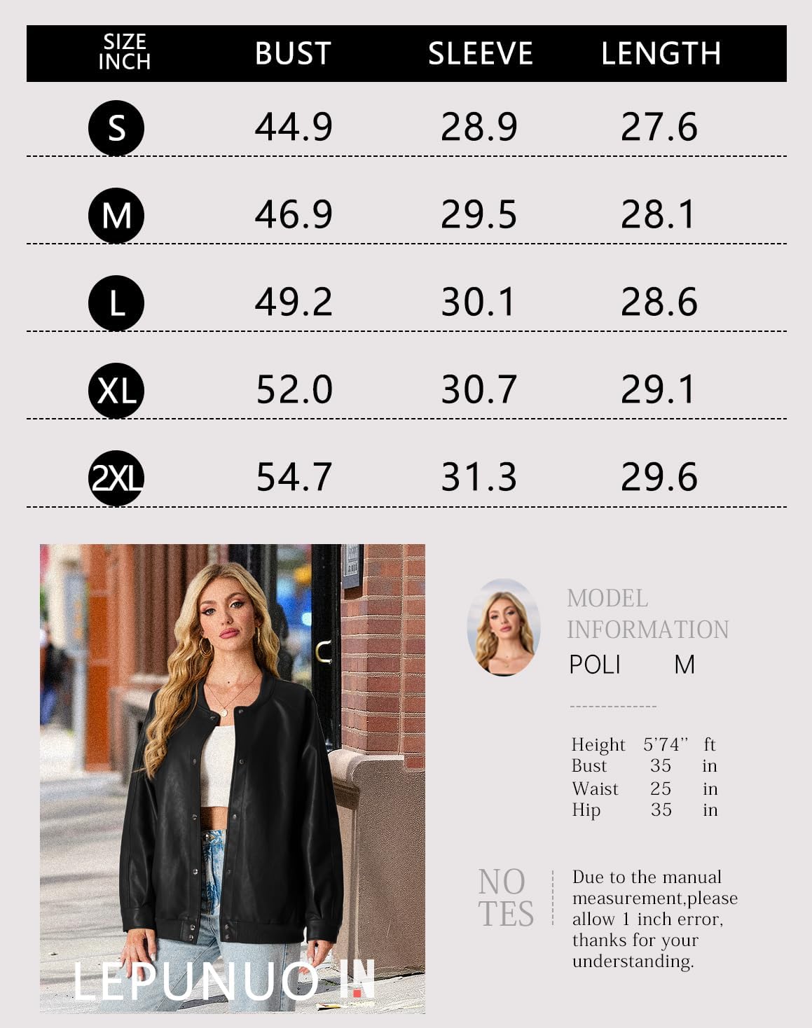 Item model number : Faux Leather Jacket Women