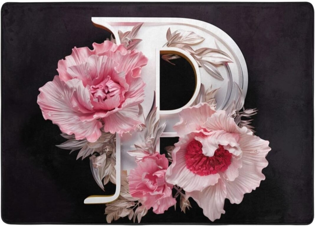 Letter P Made of Flowers Flannel Floor mat (80×58 inches), Bedroom Carpet, Living Room and Study Decoration mat