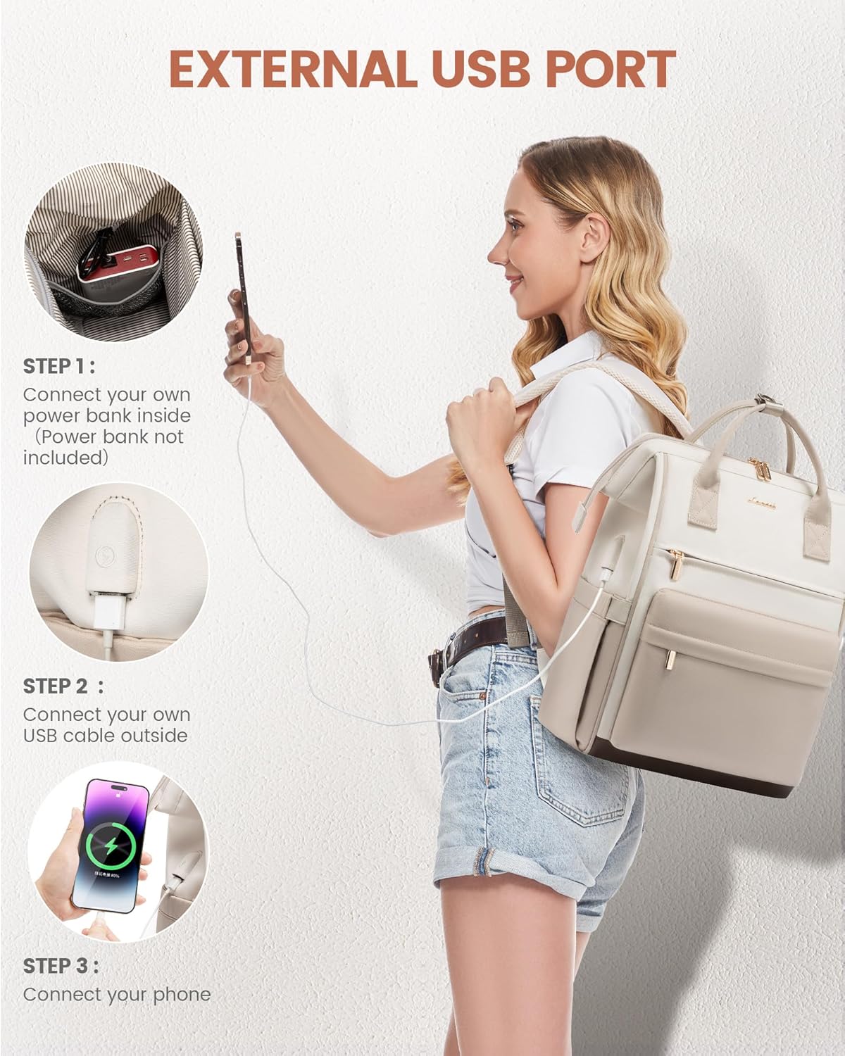 [USB Charging & Waterproof Protection]Crafted with high quality waterproof materials, this computer backpack shields contents from sudden downpours or spills. Exclusive shock-absorbing padding with breathable fabric safeguards devices from drops while preventing heat buildup. Laptop backpack women built-in USB charging port (power bank not included) , you can easily charge your devices everytime.