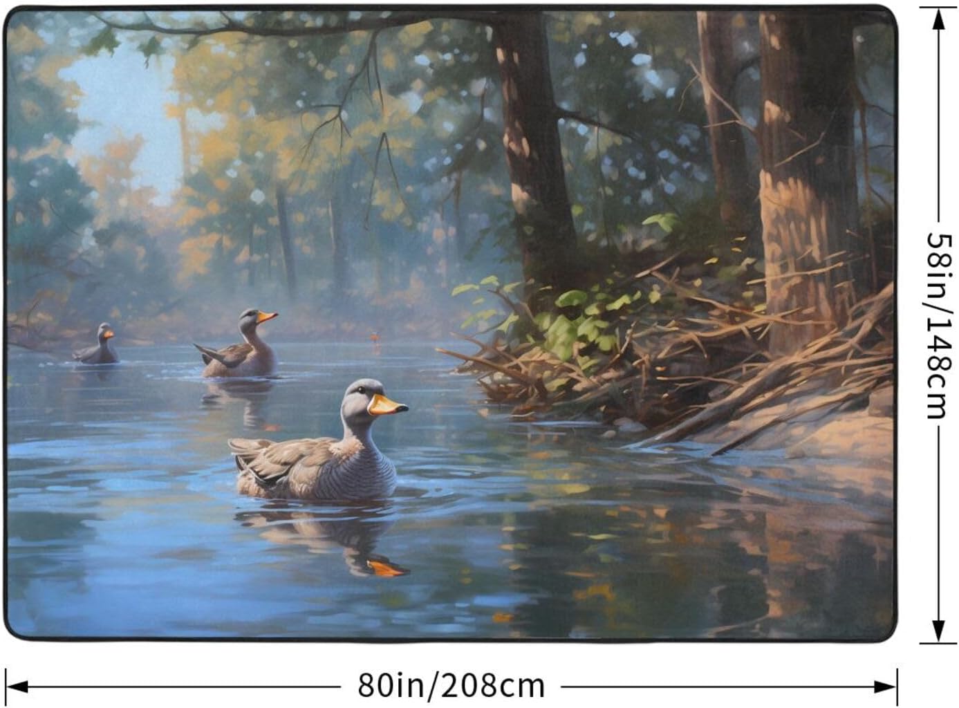 Mallard Ducks Swimming Flannel Floor mat (80×58 inches), Bedroom Carpet, Living Room and Study Decoration mat
