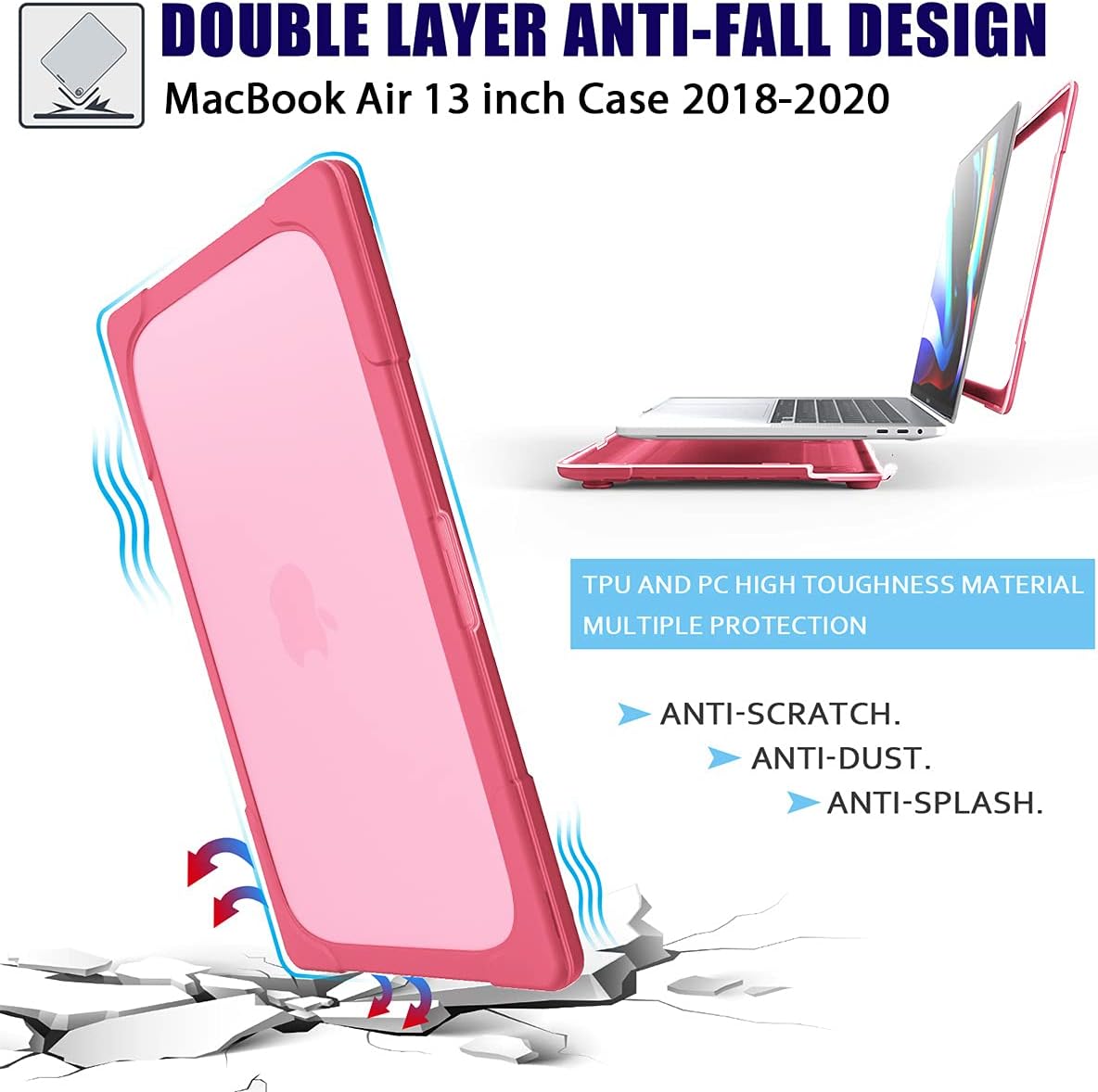 Package Include: You’ll get 1x Macbook Air13 Hard Shell , 1 x Keyboard Cover + 1x Screen Protector + 1 x Dust plug, all-round protection