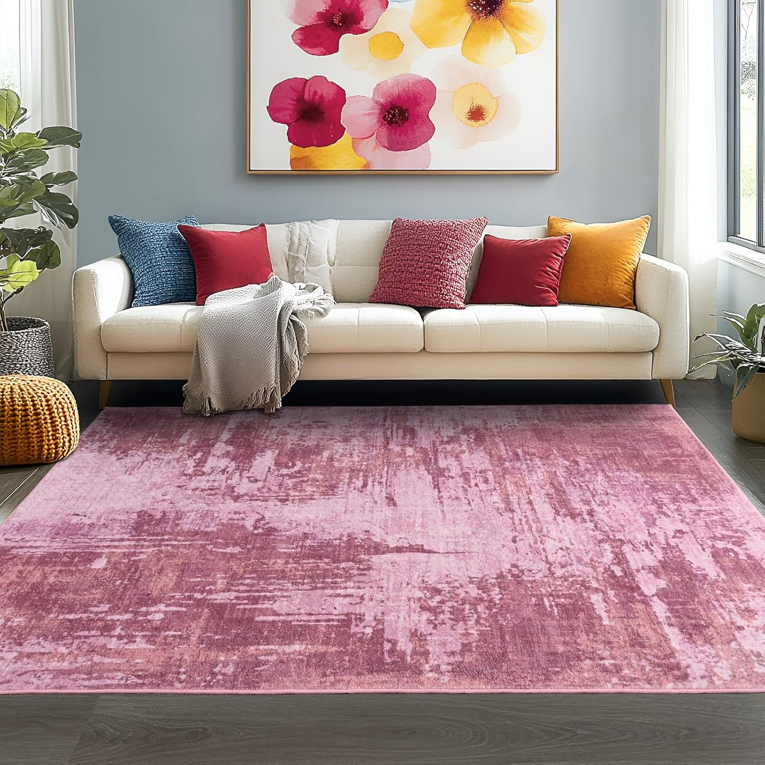 Upgraded Fabric: The skin-friendly fabric of faux wool makes your skin feel comfortable and your child’s tender skin won’t get hurt, this 6×9 Pink abstract area rug is water resistant to ensure that liquids won’t penetrate the rug after splashing, including water, coffee, wine, milk, juice, pet urine, It can be machine washed, hand washed and vacuum cleaned, easy to clean