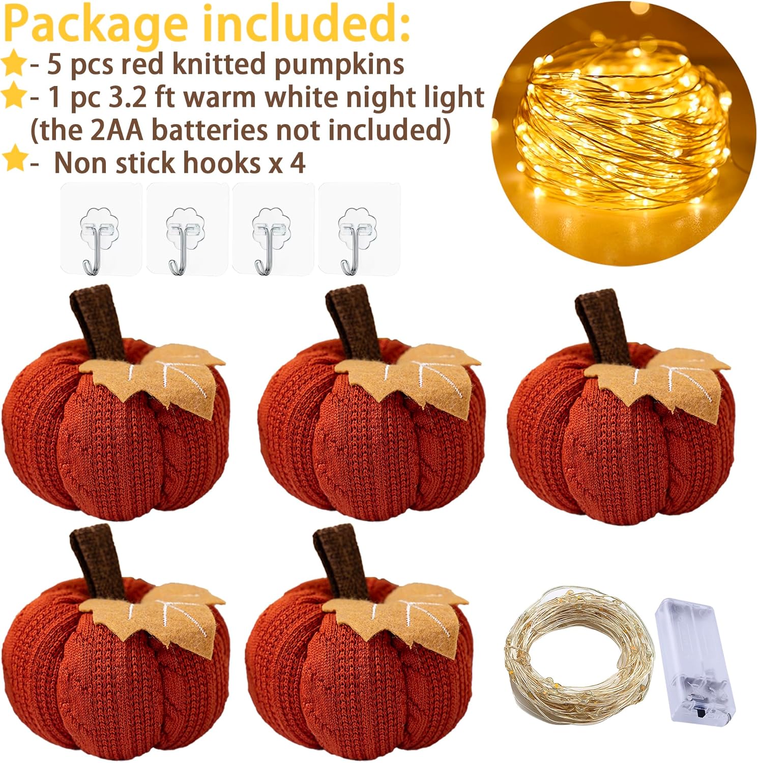 5Packs Mini Knitted Red Pumpkins w/ String Light