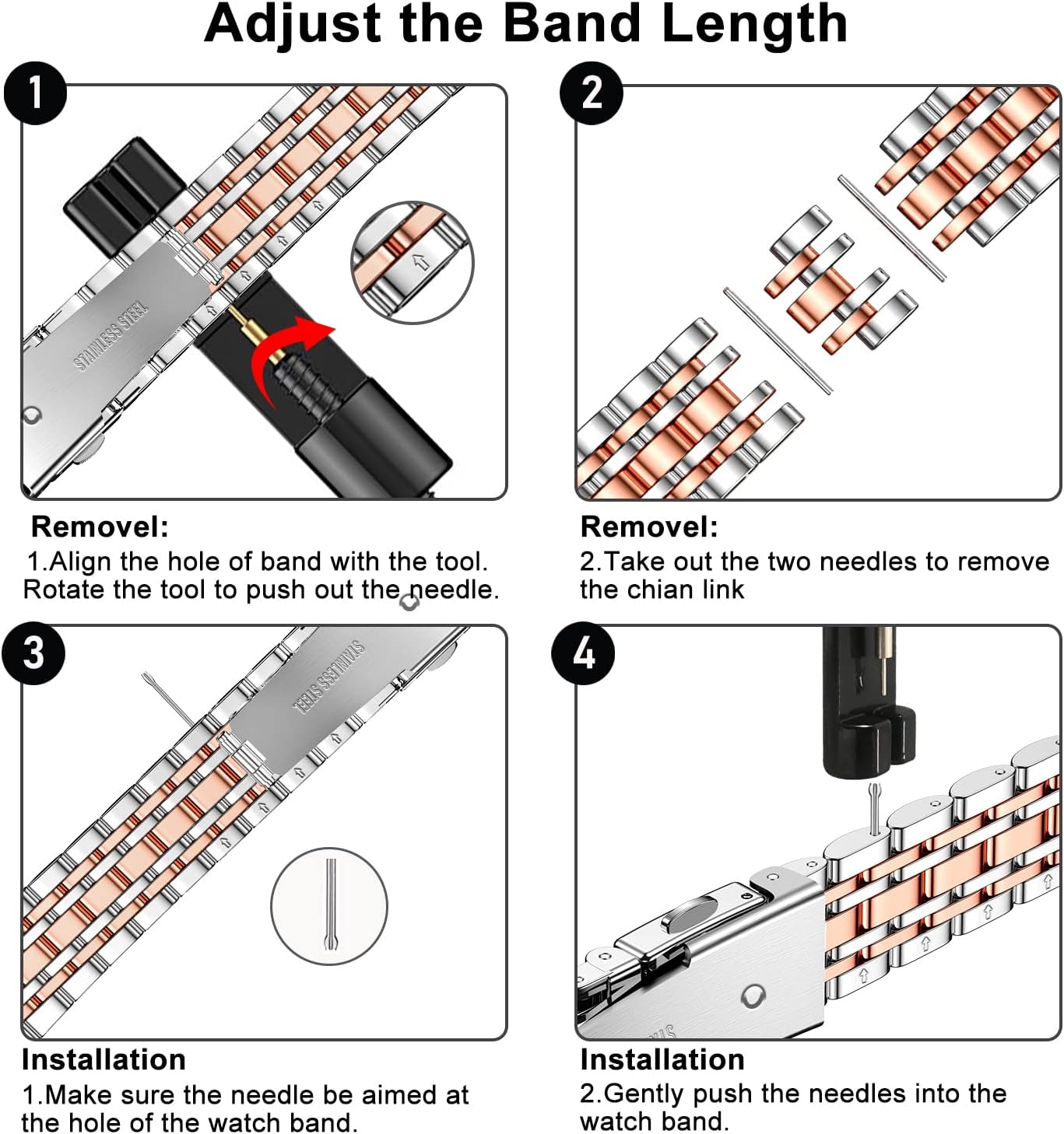 【Easy to Adjust】 iWatch bands comes with removal tools and an instruction. You can easy to remove the extra chain link to fit for your small wrist. The apple watch bands size can be suitable for wrist from 5.5-8.2 inches (140mm-208mm). Please follow the correct steps to remove the watch chain to avoid damaging the band.