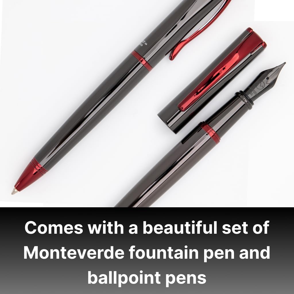 Monteverde USA Impressa Fountain Pen Gift Set (Gun Metal) Fine Nib + Bottled Ink – Premium Pen for Men & Women – Perfect for Office, Business, School, Gifts, Journaling, Autographs