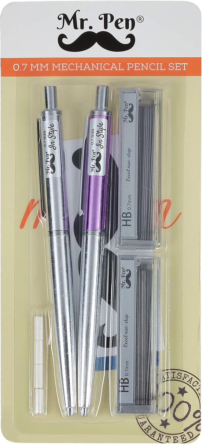 Mr. Pen – Package Includes: 2 x 0.7mm Mechanical Pencils + 2 x Pack Of 0.7mm HB Lead + 4 x Spare Erasers