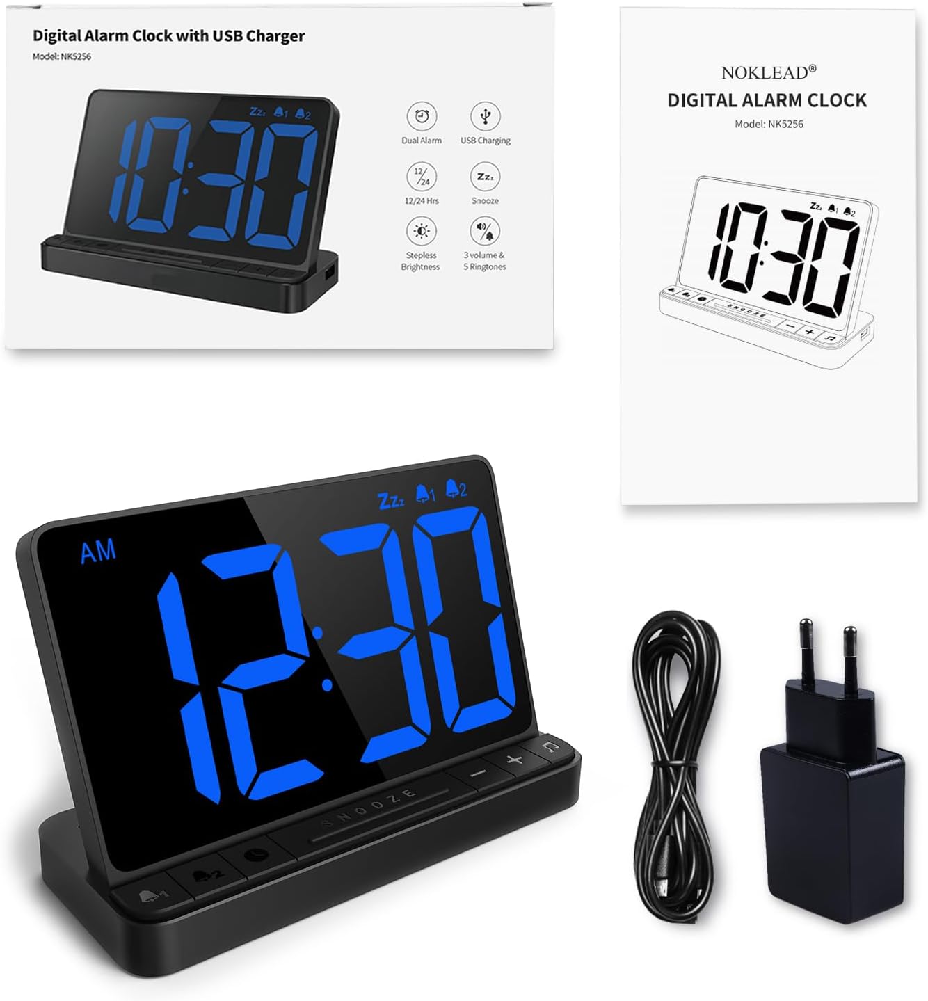 KEEP ALL SETTINGS WHEN UNPLUGGED: It has a built-in coin cell battery that keeps all settings when the power is unplugged or out, saving you the trouble of setting it again. What You Get: 1 x NOKLEAD NK5256 Digital Alarm Clock, 1 x Type-C USB Cable, 1 x AC Adapter, 1 x User Manual. NOTE: When it is unplugged or in case of power outrage, the screen will go blank and alarm will not sound