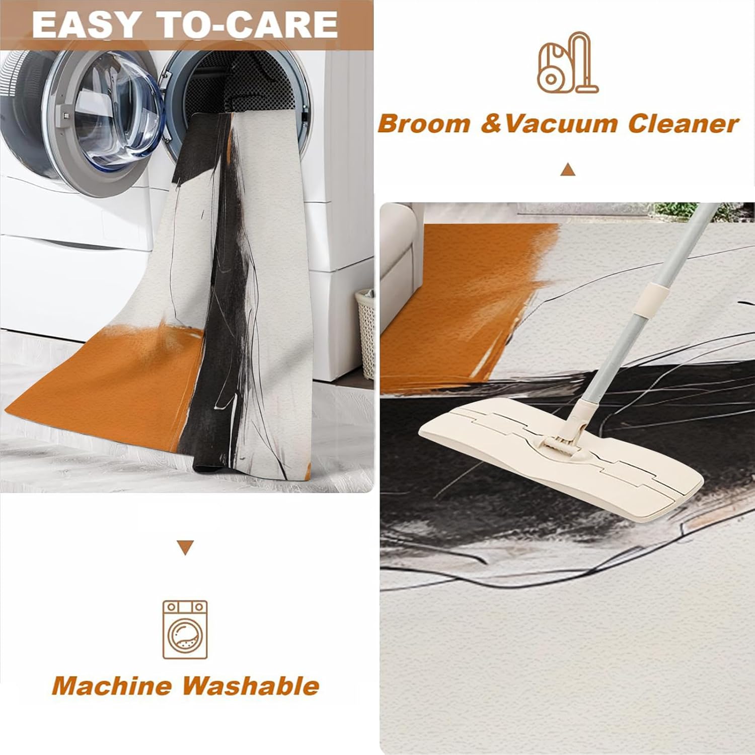 Machine washable rug, you can easily roll it for machine washing or hand wash. Carpet pile height makes it easy to vacuum and air dry in ventilated areas.