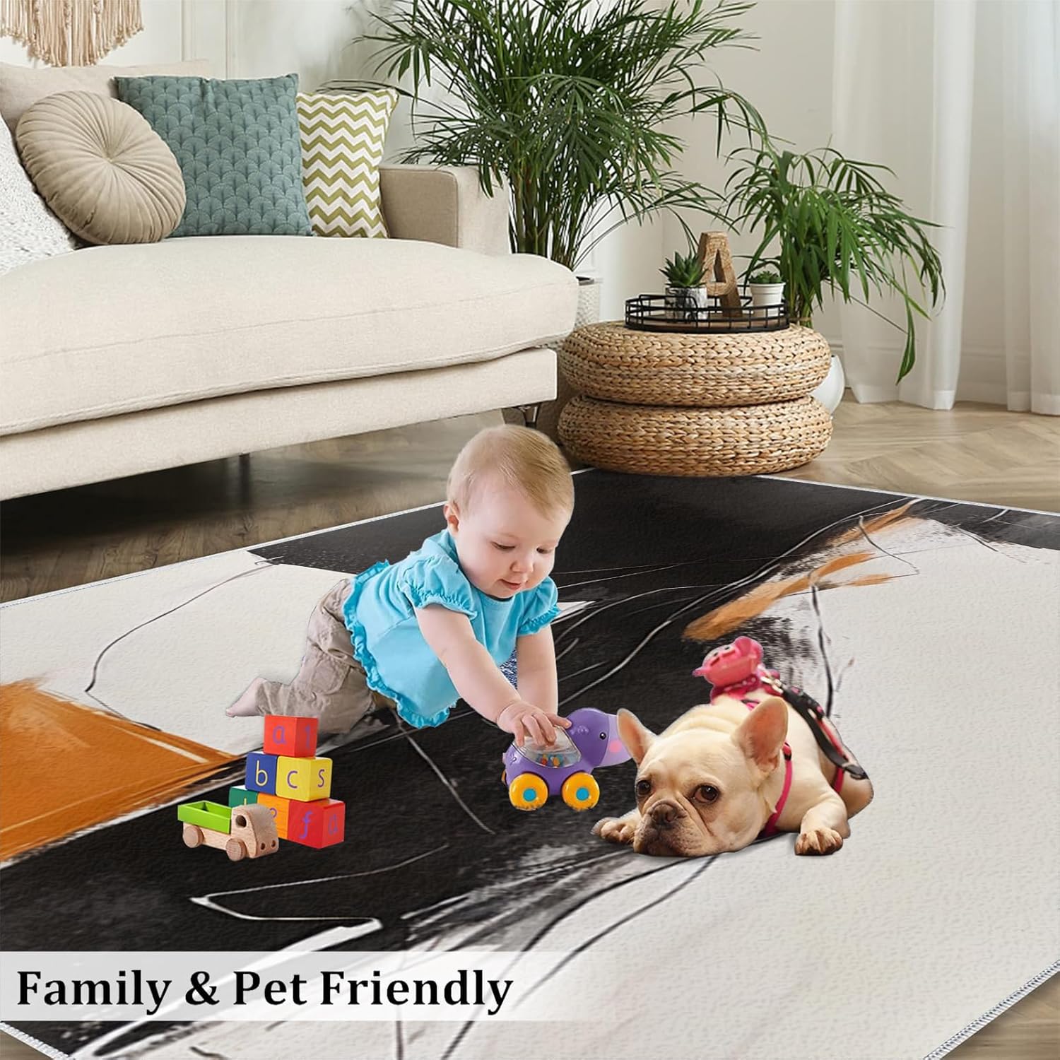 【Anti Slip Design】: Non Slip Rug is back with thousands of tiny and durable grip dots can prevent the carpet from sliding on the floor. Unique fiber-locking technique and neatly wrapped sides, avoid the risk of children tripping over the edge of the carpet, and not easy to get hair loss or off line.