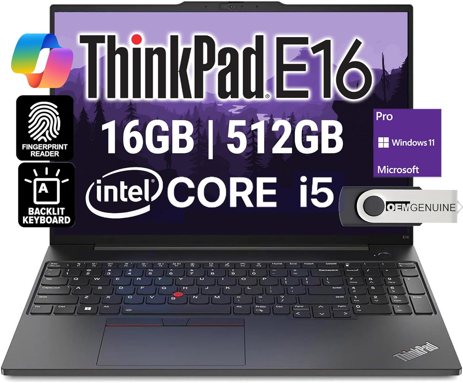 Features: 16GB RAM, 512GB NVMe, Fingerprint Reader, Backlit, spill-resistant, multimedia Fn keys, numeric keypad, WiFi 6.