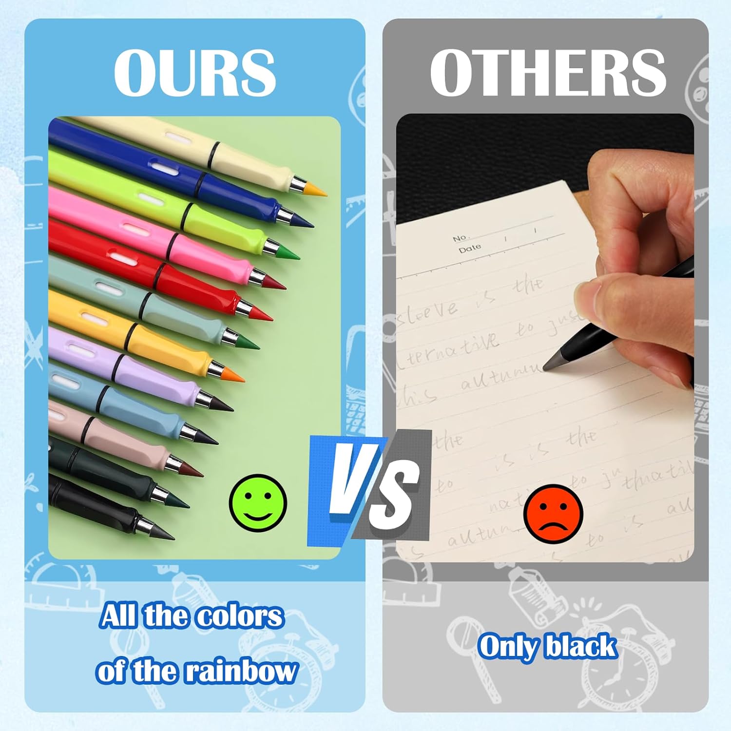 Upgraded infinity colored pencils: Compared to wooden colored pencils, everlasting colored pencils are more environmentally friendly and durable, each permanent colored pencil can replace 100 wooden colored pencils
