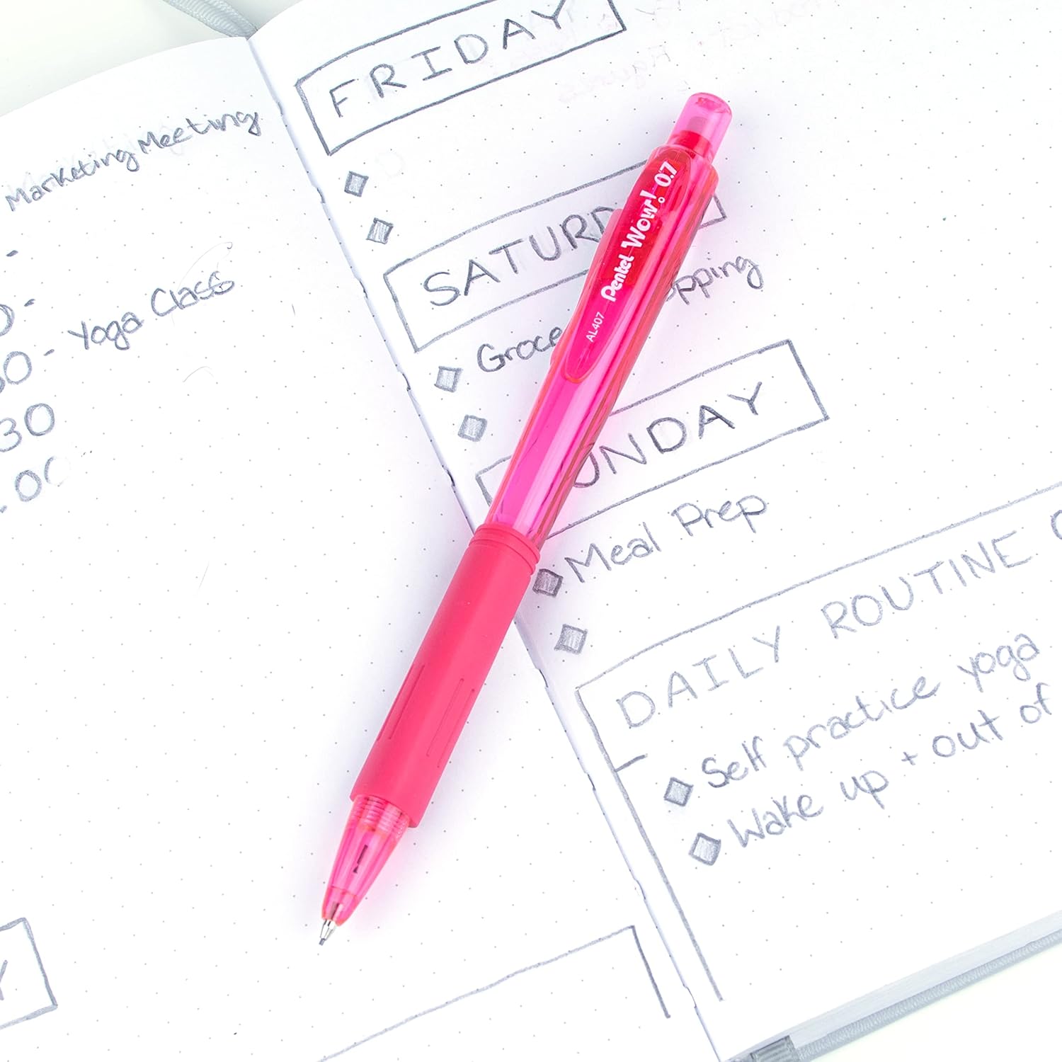 The Pentel® Wow!® Mechanical Pencil is a low price Pencil with many features found in more expensive pencils. The unique triangular shape barrel and grip makes it easy to hold and keeps the Pencil from rolling off writing surfaces. Its distinctive design stands out in a crowd. Keep writing even if your lead breaks with our unique retractable tip design. Plus, the fully retractable tip protects pockets & purses. Available in 0.5mm & 0.7mm lead sizes, it comes pre-loaded with Pentel® super Hi-Polymer® HB lead – guaranteed to scan on standardized tests, never needs sharpening and produces a clear dark line.