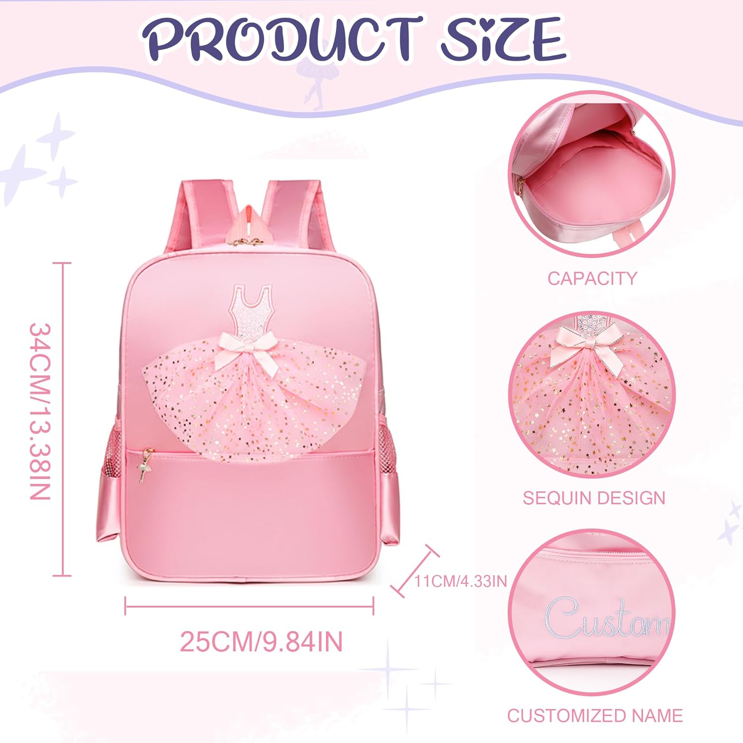 【Easy to Carry】: Child size: 9.84 inches long x 4.33 inches wide x 13.38 inches high, not including shoulder strap length, equipped with adjustable shoulder straps and high-quality lining. The mesh pockets on both sides can hold water bottles or umbrellas. The ideal size is enough to meet the needs. It can not only be used for dance classes, but also ideal for going to the zoo, playing in the park and any other outdoor activities.