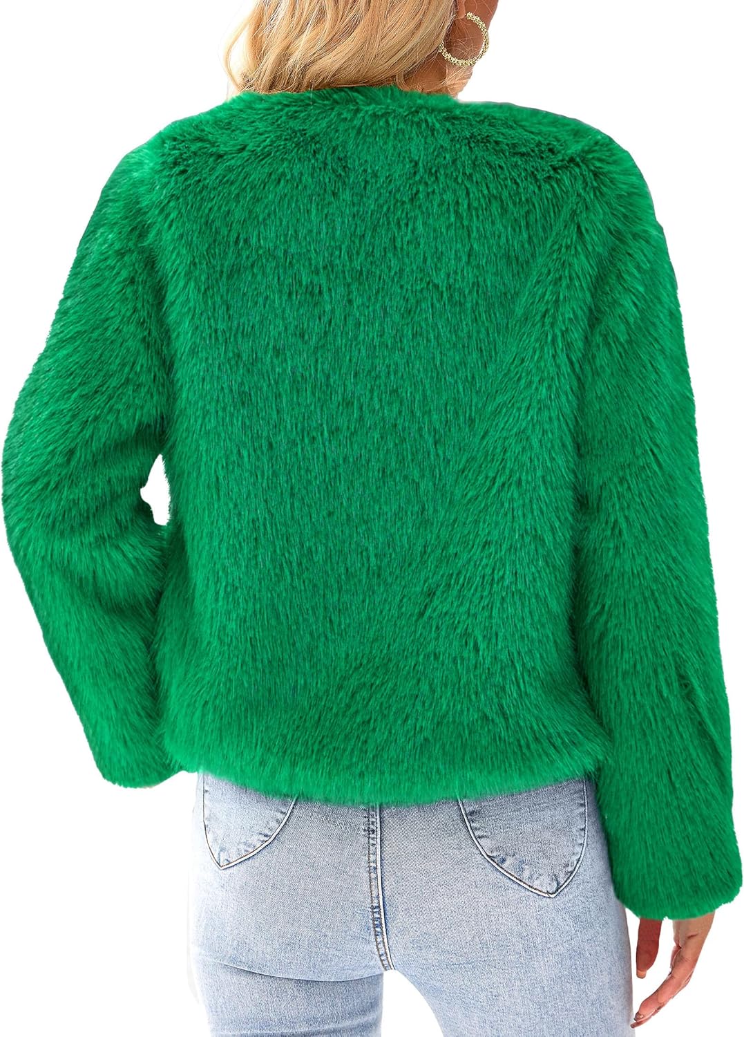 PRETTYGARDEN Women’s 2024 Winter Coats Fleece Cropped Jacket Faux Fur Long Sleeve Pockets Shaggy Warm Outerwear Fall Clothes
