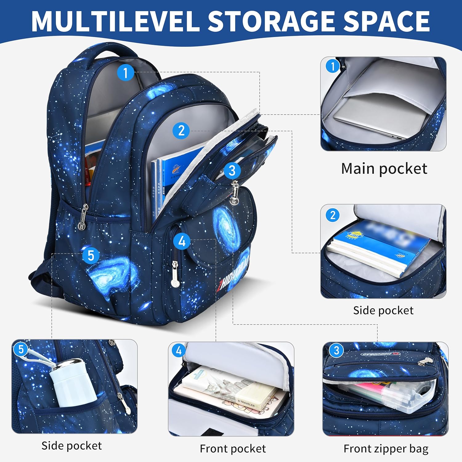 ◆Eye – Catching Design:This backpack features a mesmerizing space – themed print with vivid blue galaxies and sparkling stars, which is sure to appeal to young explorers. It’s a great way for kids to express their personality.