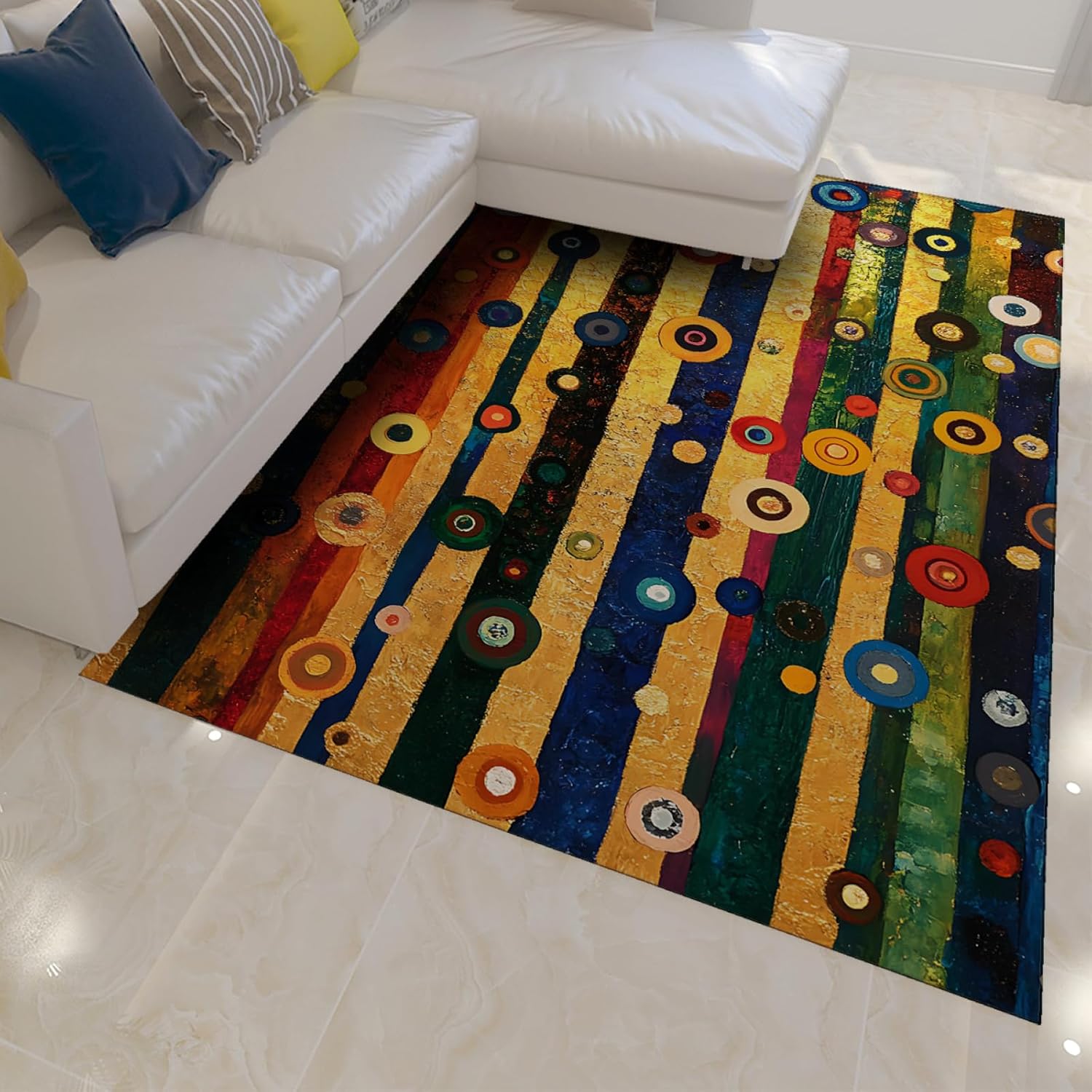 Rainbow Striped Large Area Rug Geometric Circular Pattern Thin Floor Mats for Living Study Room Bedroom Hallway Washable Non Slip 2×4