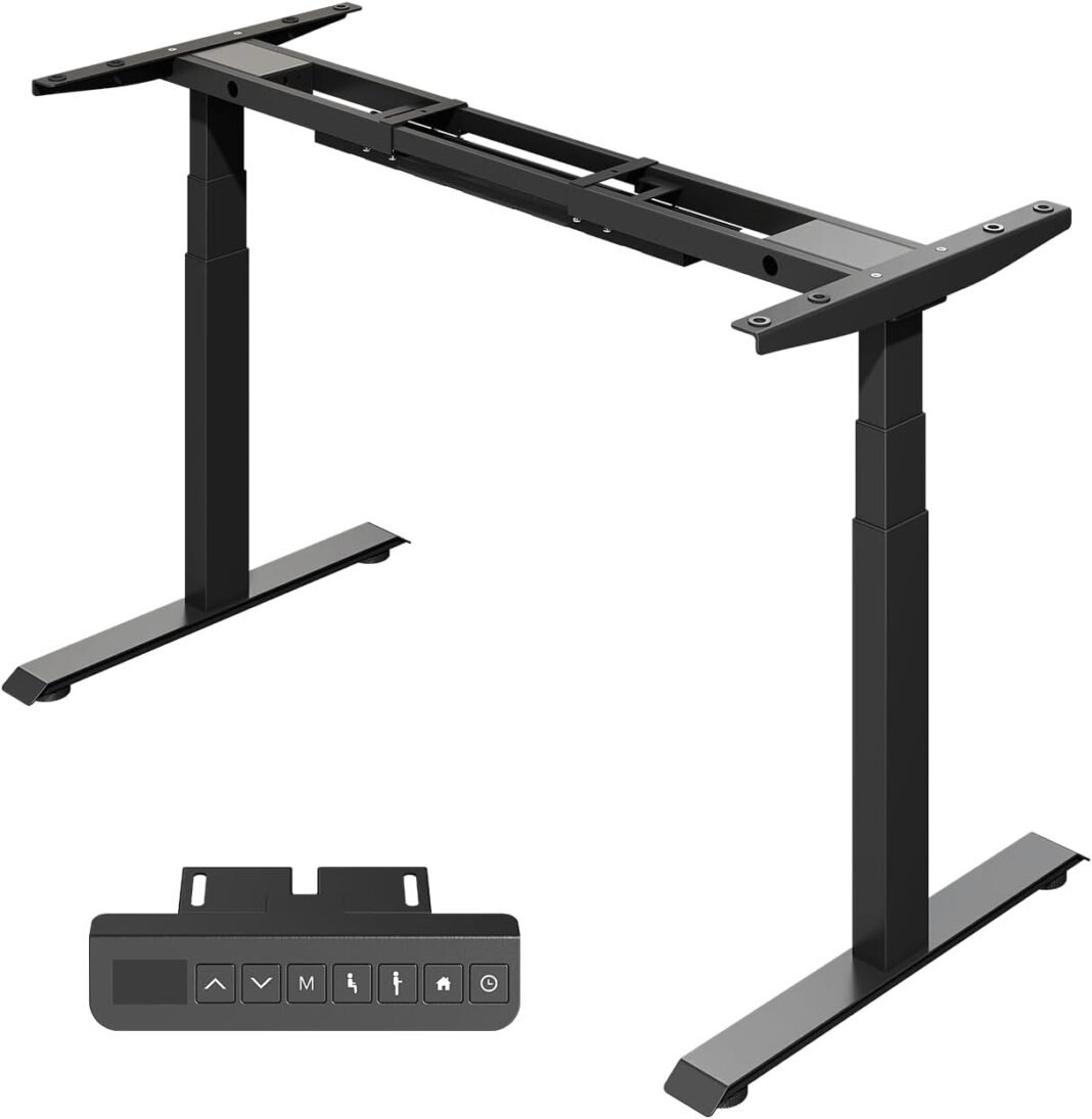 [POWERFUL AND SMOOTH DUAL MOTOR LIFTING SYSTEM]: The length of the electric adjustable desk frame can be adjusted from 43.3 inches to 63 inches [1100-1600 mm], and the height can be adjusted from 23.8 inches to 49.4 inches [600-1255 mm].