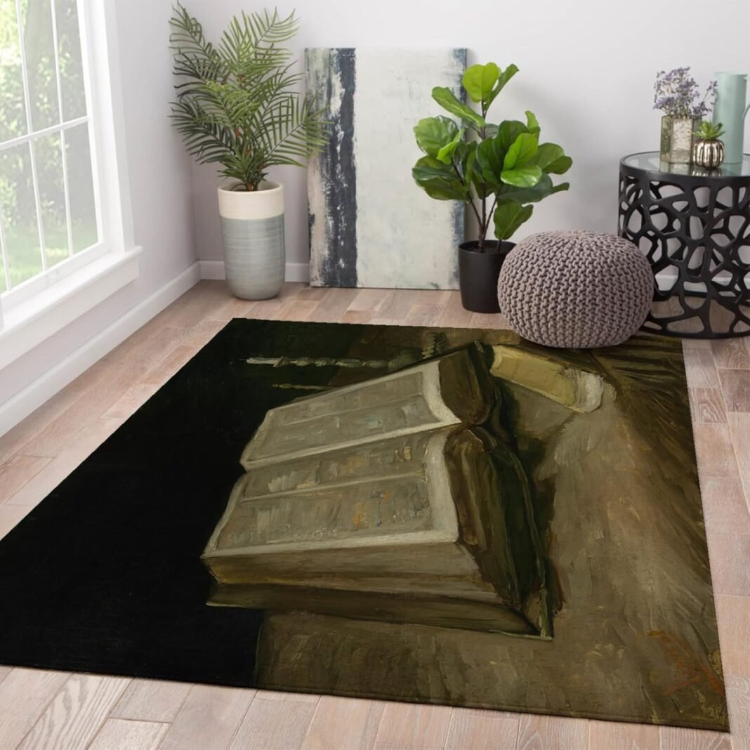 Retro Large Area Rug Famous Painting Print Rugs Low Pile Floor Mat Books Pattern Carpet for Living Study Room Bedroom Classroom 5’x8′