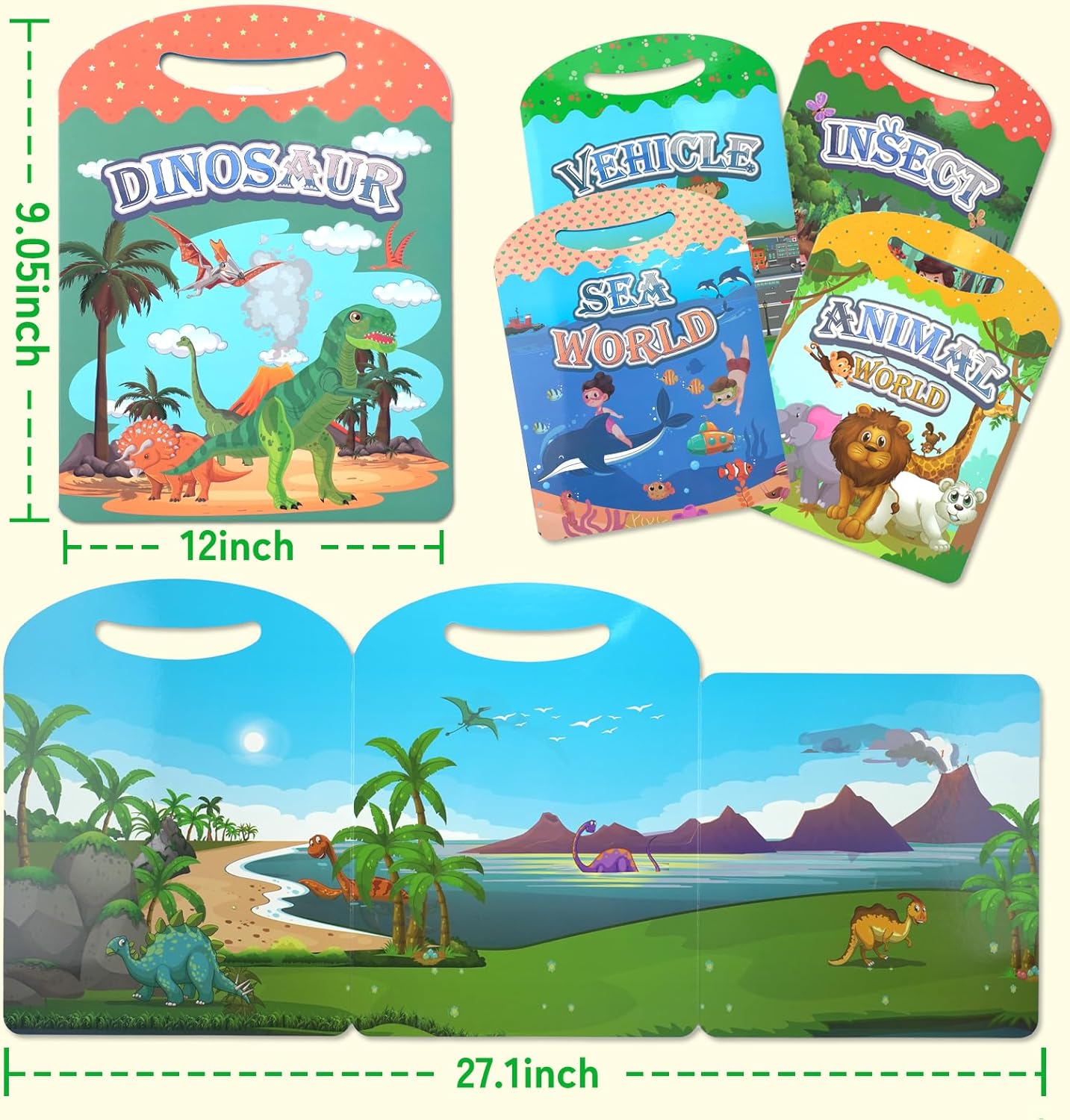 Various Themed Activity Books: Many themes to choose from animals, ocean animals, insects, traffic dinosaurs, Can lead children to recognize various animals, insects, transportation, dinosaurs,they can bring different experiences and cognition to children, and satisfy children’s curiosity.