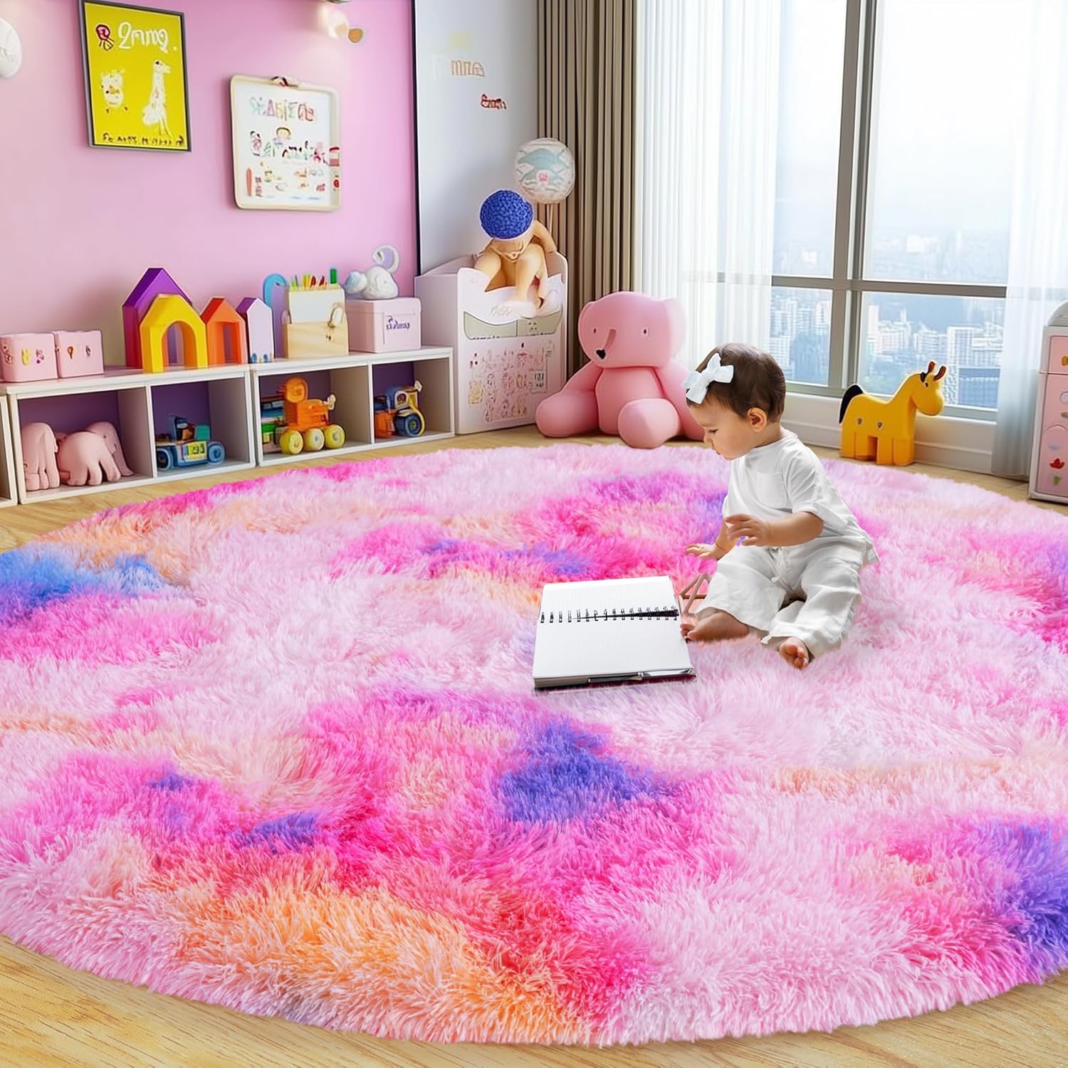 Upgrade Non Slip Bottom Rug: The plush fuzzy round living room rug has thousands of non slip points at the bottom, ensuring that the carpet is firmly fixed to the ground and enhancing safety. A 0.3 inch thick memory sponge is used in the middle of the rug to reduce the spread of footsteps and other noise, creating a quiet and relaxed living environment