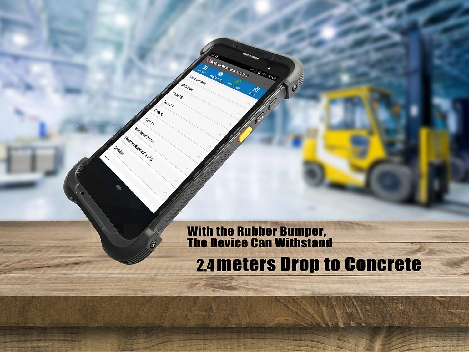 More Durability — With ruggedized design and protective rubber bumper, this mobile device can withstand 2.4 m / 7.87 ft. drops (at least 20 times) to the concrete. And its IP65 rated sealing can handle tasks in the rain, dirt, mud, sand & water. Perfect for tough working conditions that demand the most from their tools.