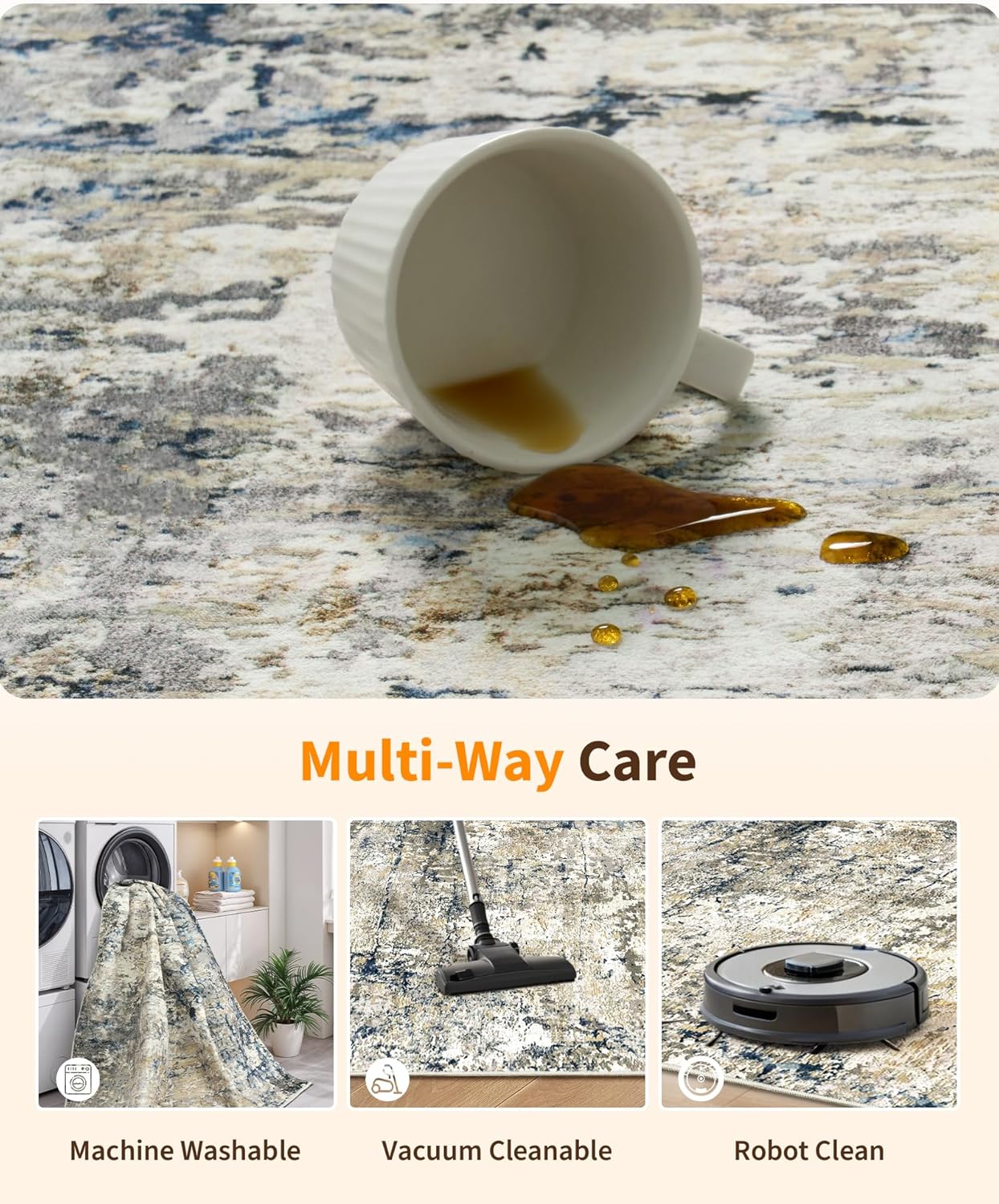 Machine Washable Rug: Abstract area rugs is easy with machine-washable feature, our abstract rugs are easy to care for. Simply toss it in the washing machine and Simply vacuum regularly .With proper care, your abstract rugs will look as good as new for years to come.