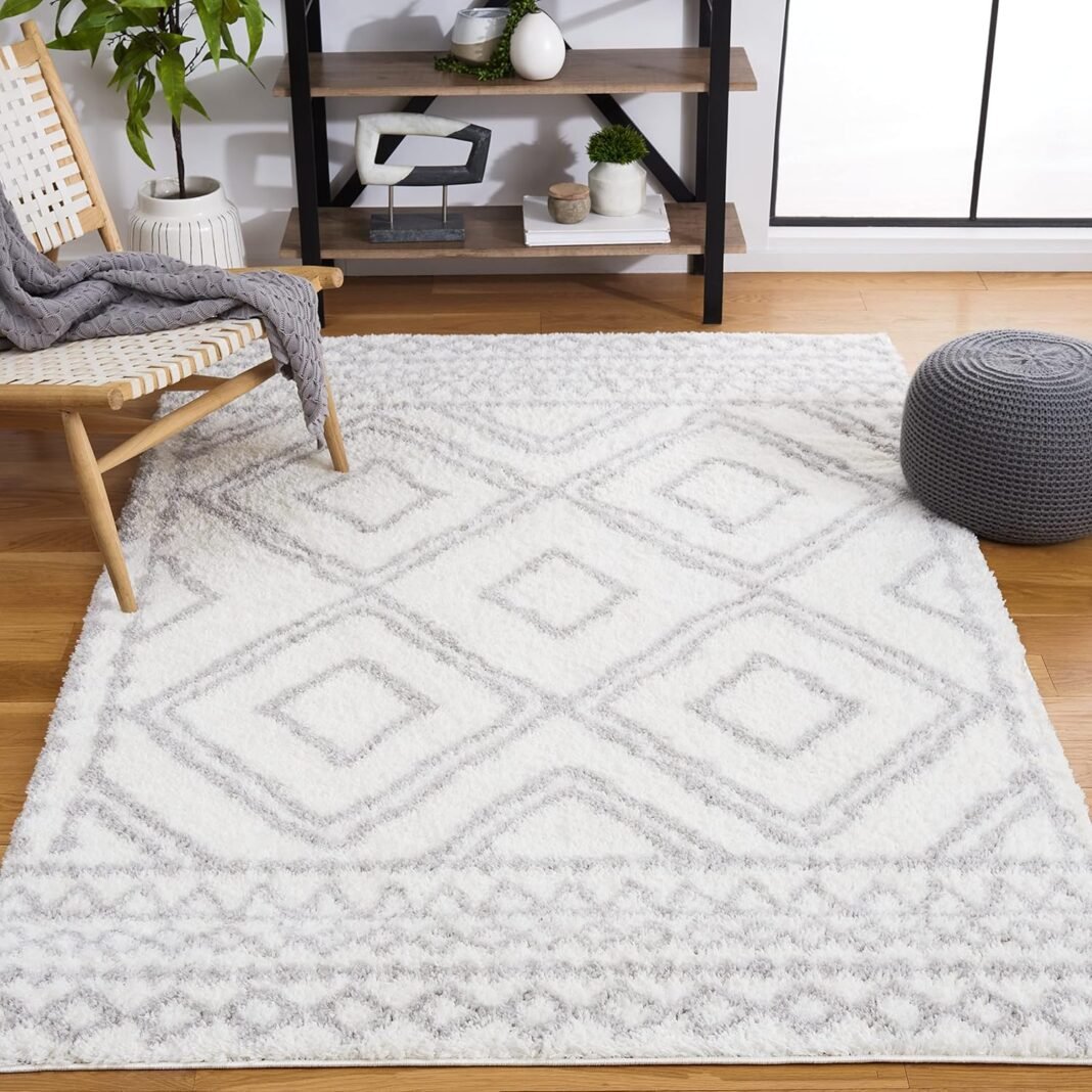 SAFAVIEH Area Rug 8×10 – Berber Shag Collection – Large – Ivory & Grey, Moroccan Design, Non-Shedding & Easy Cleaning, Plush Thick Pile, Ideal for Living Room, Bedroom, Dining Space (BER589A)