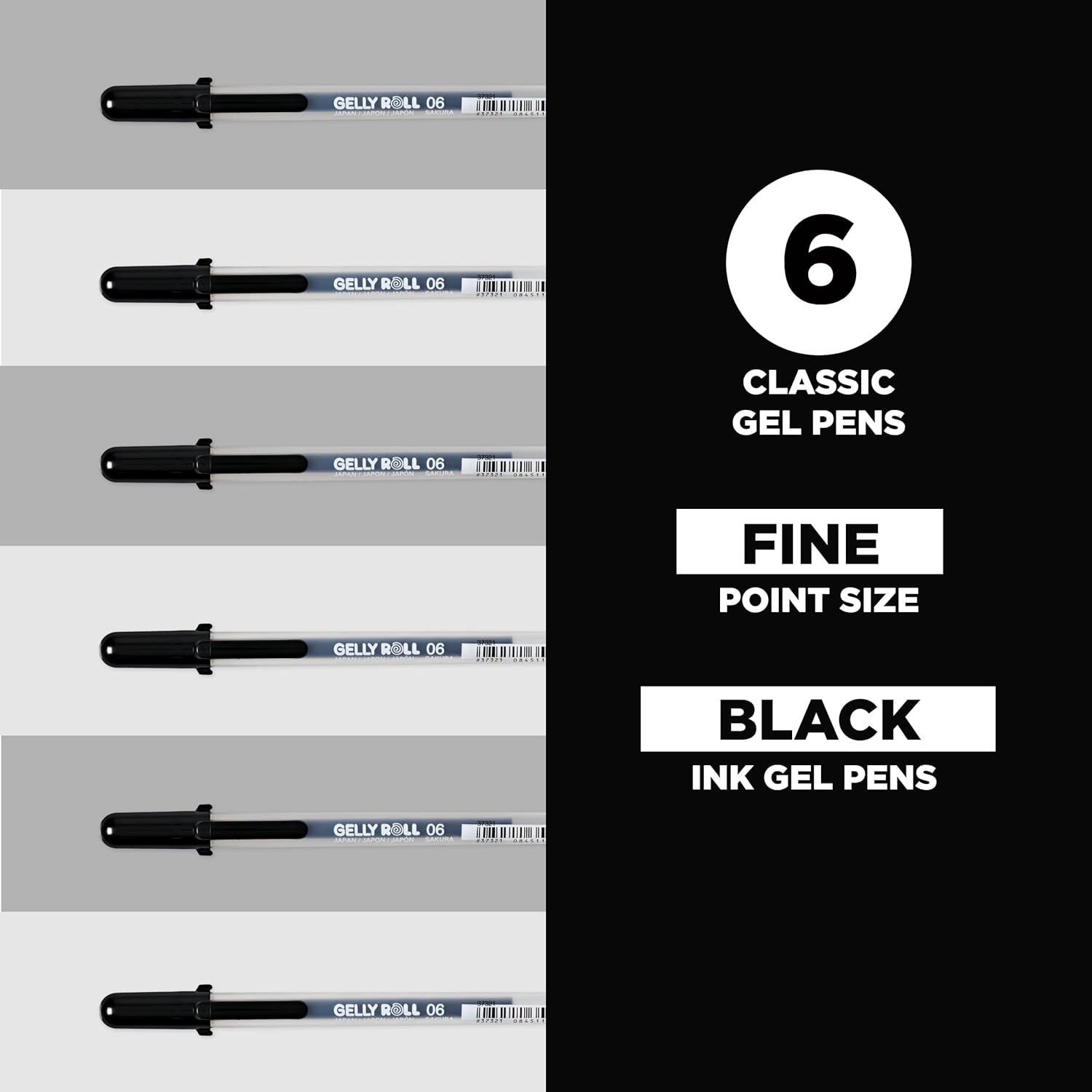 SAKURA Gelly Roll Gel Pens – Fine Point Ink Pen for Journaling, Art, or Drawing – Classic Black Ink – Fine Tip – 6 Pack
