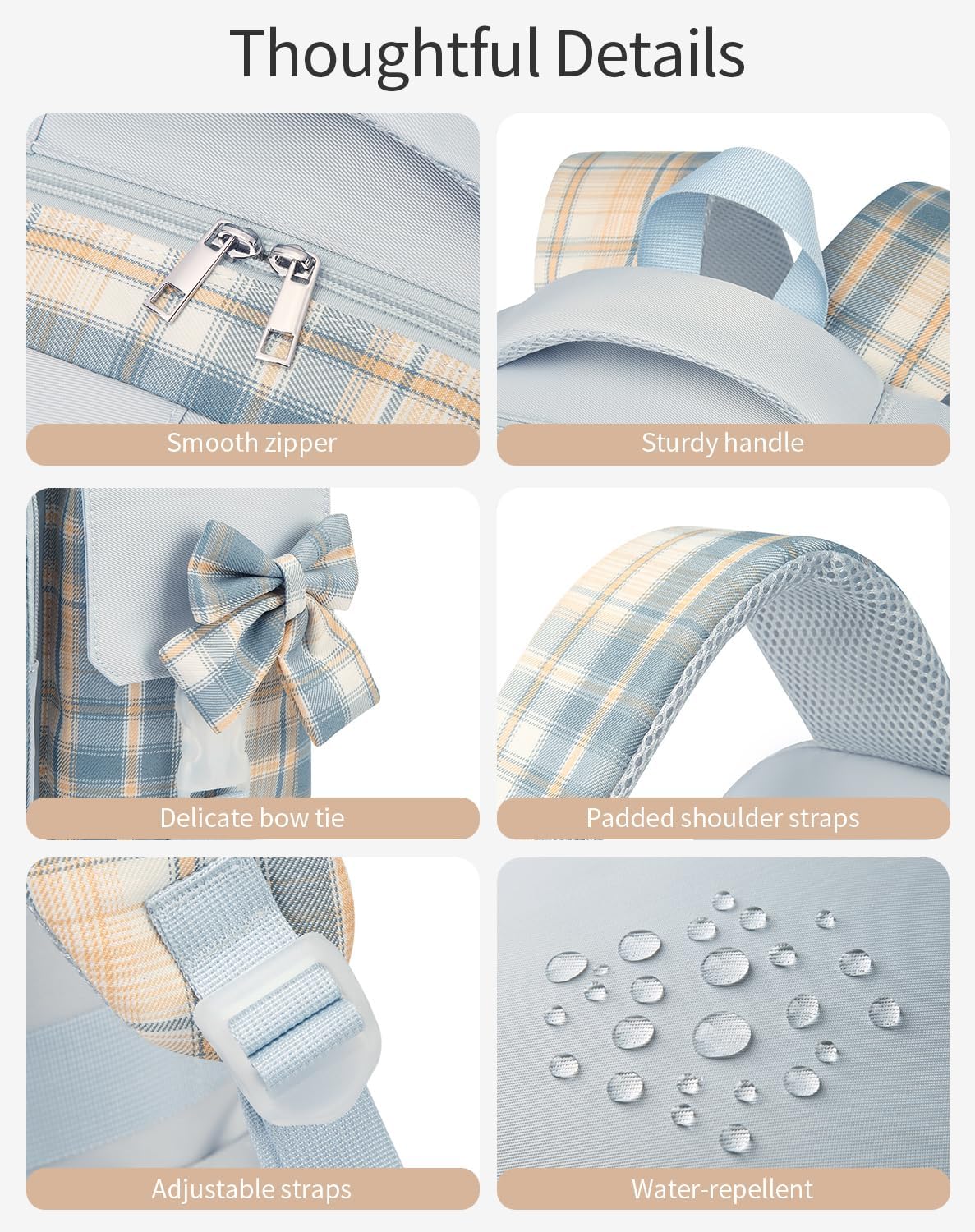 Cute Design: We’re design the bag with a check element and a playful color, and a large bow as a decoration. It will be a school essentials for a girls