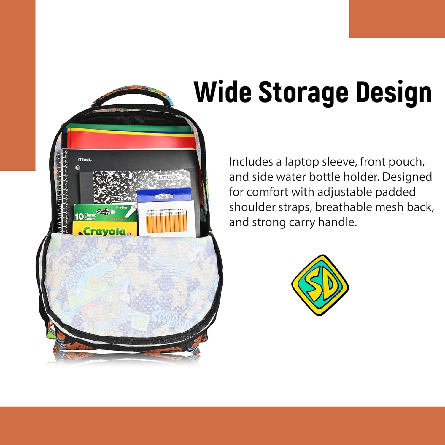 Spacious & Practical Storage: Designed with mystery-solving practicality in mind, this backpack includes a roomy main compartment for books and folders, side mesh pockets for water bottles, and a front zippered pocket for quick access to smaller items. It’s ideal for school, travel, or day trips. Whether inspired by Scooby’s appetite or Shaggy’s laid-back vibe, this backpack keeps you organized for every adventure.