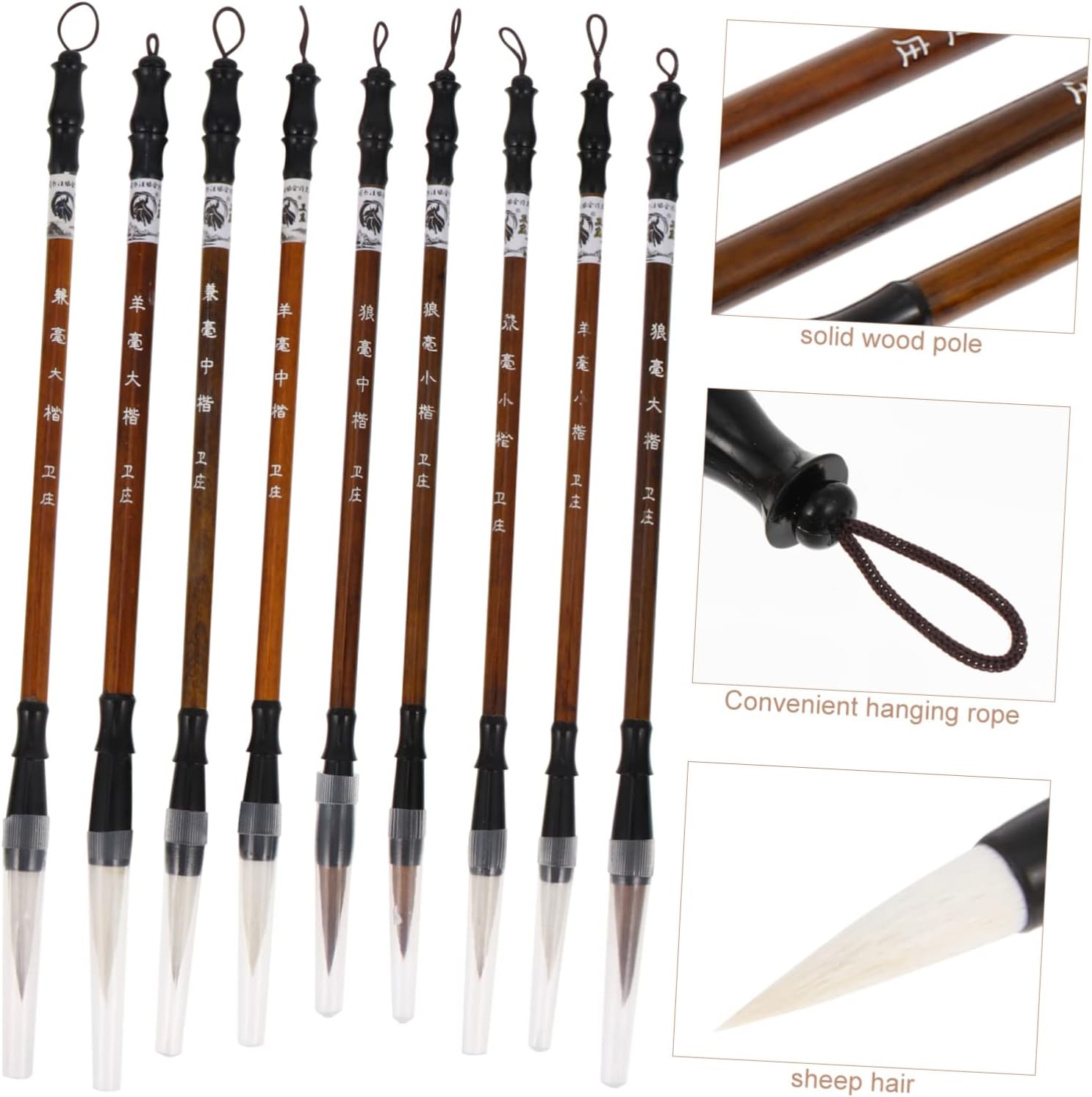 -Material: Wolf hair, sheep hair and solid wood pole calligraphy.